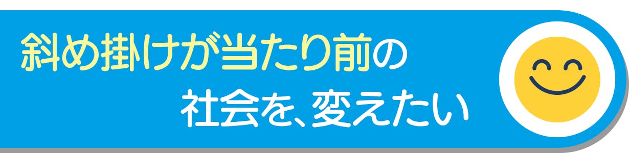 私が目指しているのは、「斜め掛けをしない、縦掛けが当たり前になる社会」です。