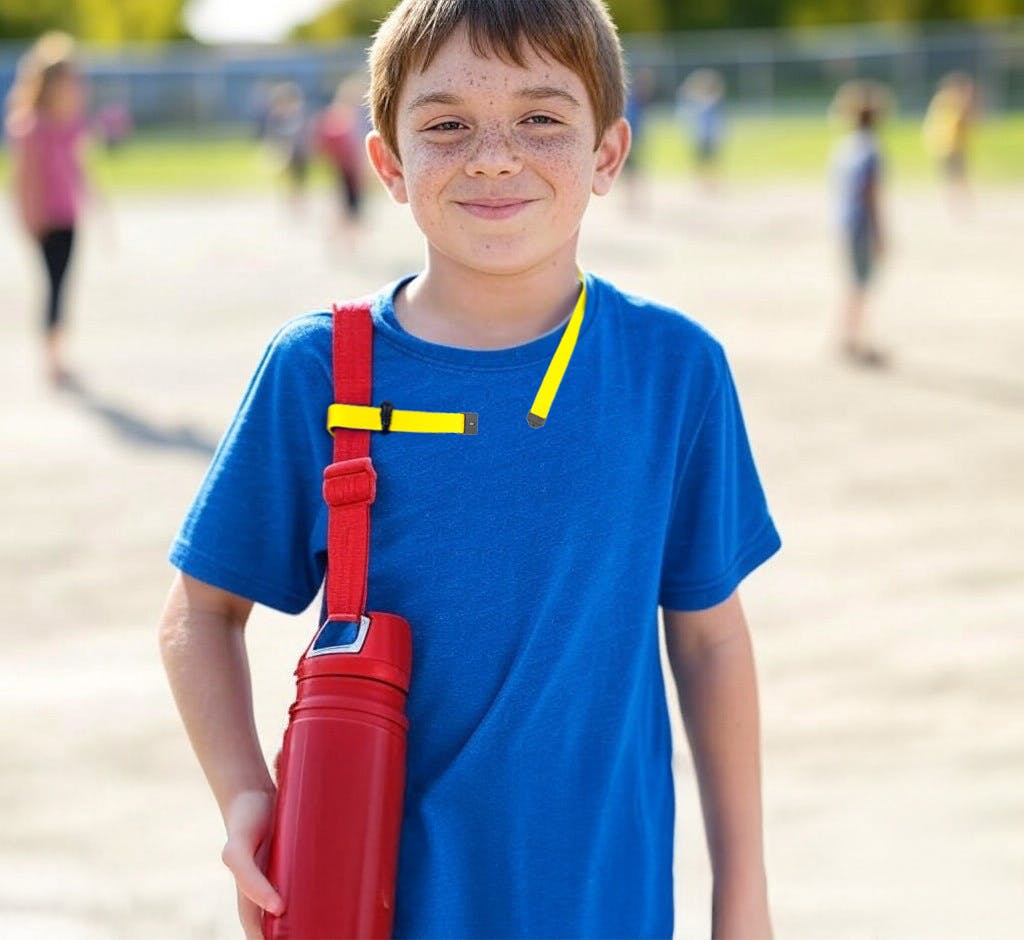 ZUREVO®を使えば、水筒・バッグを斜め掛けではなく「縦掛け」にできます。そうすれば、転倒時に水筒・バッグが地面とお腹に挟まるリスクを軽減でき、また、水筒・バッグのストラップによる引っ掛け事故を無くすことができます。