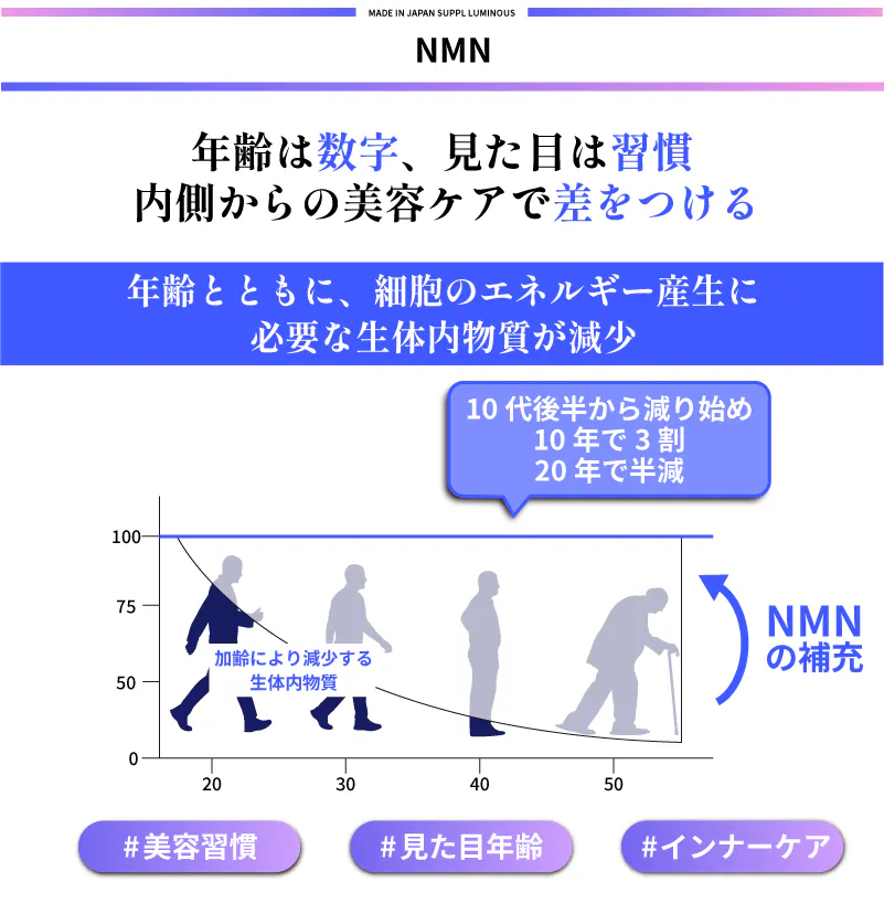 NMNは美容面では、内側から美容コンディションをサポートしふっくらとした印象を目指します。