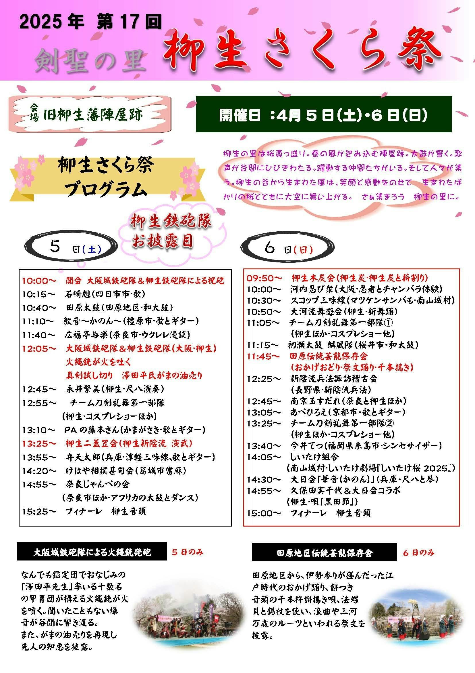 <2025年 第17回 柳生さくら祭 プログラム・会場図>