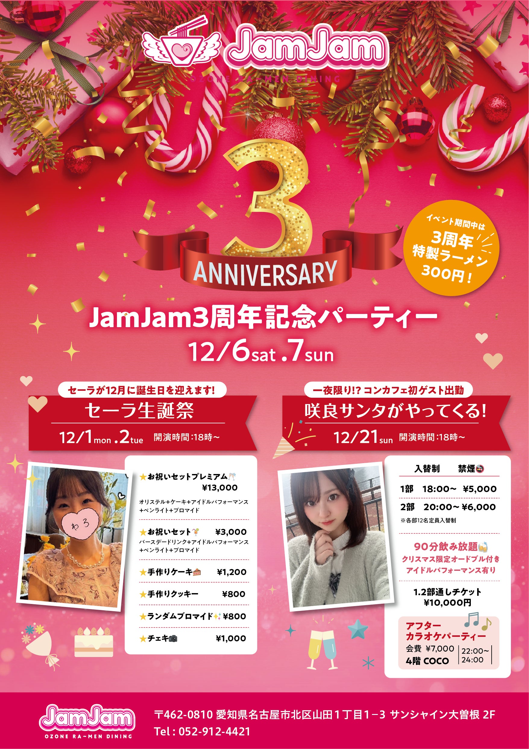 そして2025年12月1日、Jam Jamは3周年を迎え、クリスマスイベントも無事開催できました。