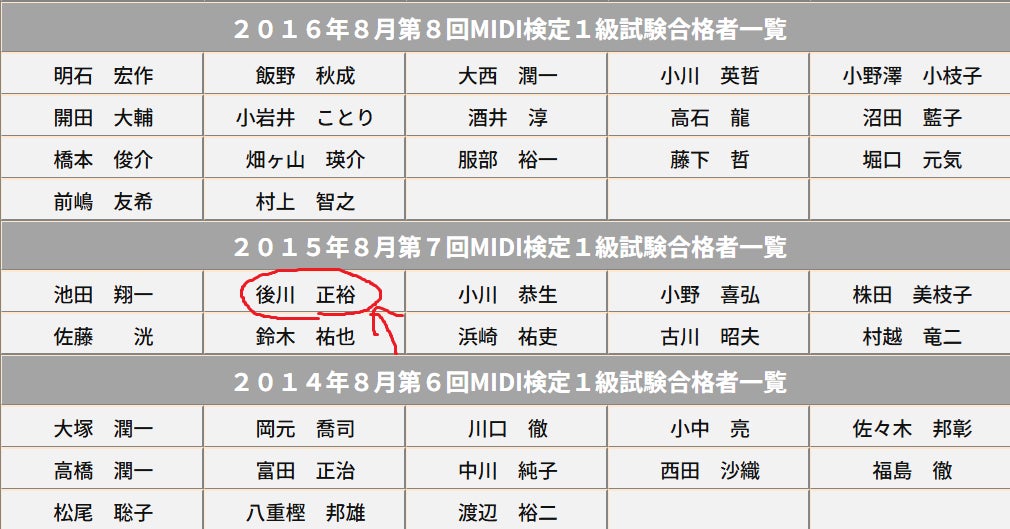 音楽活動を継続しながら、MIDI検定1級を取得。