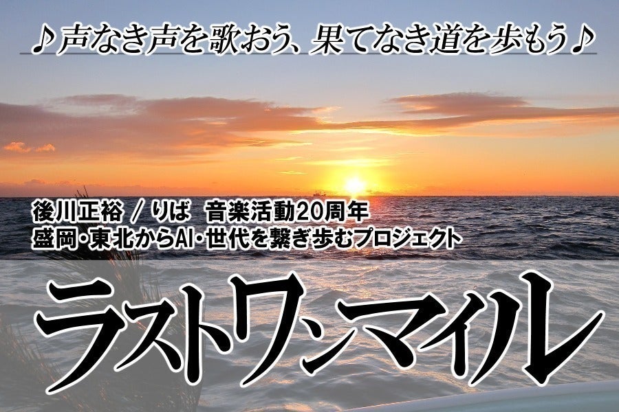2026/03/10 20:00いよいよ残り1日となりました「ラストワンマイル」主催の後川 / りばです。クラウドファンディングも残り1日となりました。ここまで多くの方にご支援をいただき、心より感謝申し上げます。本当にありがとうございます。これからの一年今回のクラウドファンディングは、ここから始まる一年の活動のスタートでもあります。これからの一年、音楽を作り、形にし、少しずつ皆様に届けていきたいと思っています。アルバム制作、新しい企画、そして、音楽そのもの。一つ一つを丁寧に積み重ねながら、音楽とともに歩んでいきたいと思います。来年度内に出す予定のタイトル今一度、来年度にリリースするタイトルを、ここでおさらいさせていただきます。2026年4月SynthesizerV2を駆使したアルバム「Ocean Blue」2026年4月26日開催の「M3春2026」にて、イベント初頒布。2026年10月SynthesizerV2を駆使し、冬をイメージしたオリジナル音楽アルバム10月末ごろ開催の「M3秋2026」にて、イベント初頒布。2026年11月東北三姉妹・ずんだもんをボーカルとしたアルバム「マヨイガ」2026年内当企画メインタイトル、後川正裕オリジナルソング集「ラストワンマイル」2026年内後川正裕オリジナルインストアルバム「大空支配~Entrust yourself to the sky~」また、2026年11月頃盛岡市内にて、限定イベントの開催他、随時即売会への参加・コンピレーションアルバムの企画と参加など。様々な活動を継続してまいります。YouTubeチャンネルについてこれまでの音楽や、地域の風景、日々の活動については、YouTubeチャンネル「ばっくりばーちゃんねる」でも少しずつ発信しています。音楽だけではなく、岩手の風景や、地域の空気感なども含めて動画として残しています。もしよろしければ、こちらもご覧いただけましたら嬉しいです。【ばっくりばーちゃんねる】https://www.youtube.com/@Ushirokawa_info音楽と原風景自分にとって音楽の原点には、故郷の風景があります。岩手の海や山、街の空気、そこに暮らす人たち。そうした風景や日々の営みの中には、大きな声にならない思いや、静かな願いのようなものもあると思います。私はこれからも、そうした 声なき声 に耳を傾けながら、音楽という形で表現していきたいと思っています。そして、自分の故郷をこれからも大切にしながら、音楽を続けていきたいと思います。クラウドファンディングは明日24:00で終了となります。もしこのプロジェクトに少しでも興味を持っていただけましたら、ぜひ最後に応援していただけましたら嬉しいです。どうぞよろしくお願いいたします。最後まで、ラストワンマイルを歩いていきたいと思います。 もっと見る
