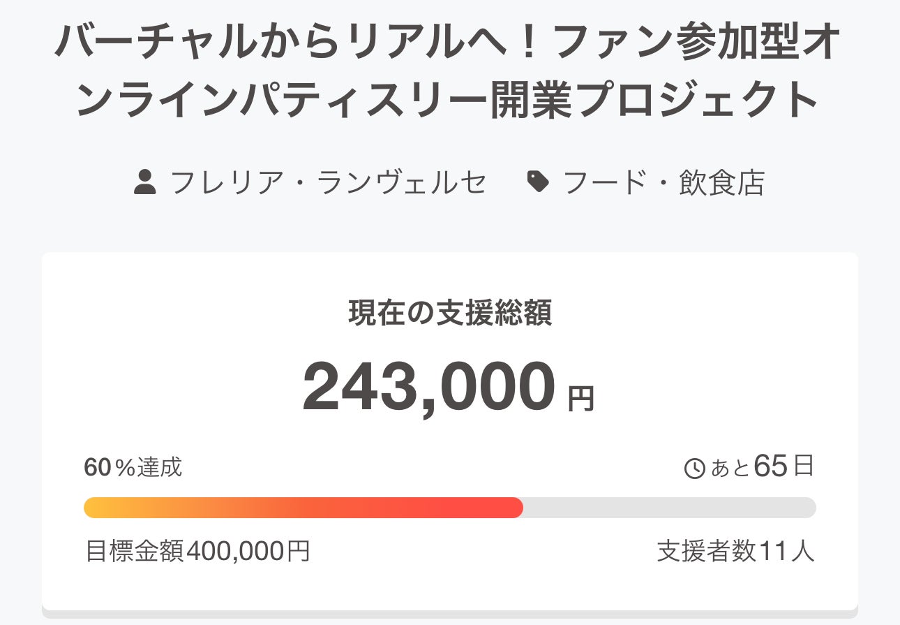 なお、最初の目標である40万円を超えていただいたご支援につきましては、今後online pâtisserie Lienの試作費などに大切に充てさせていただきます。
