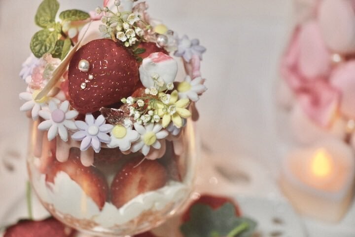 〈↑初配信のために制作したイチゴのパルフェ〉