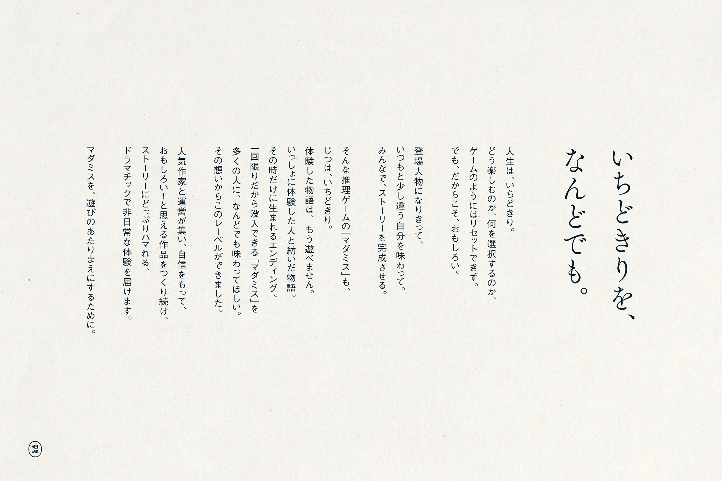 マダミスは、一生で一度しか遊べない。