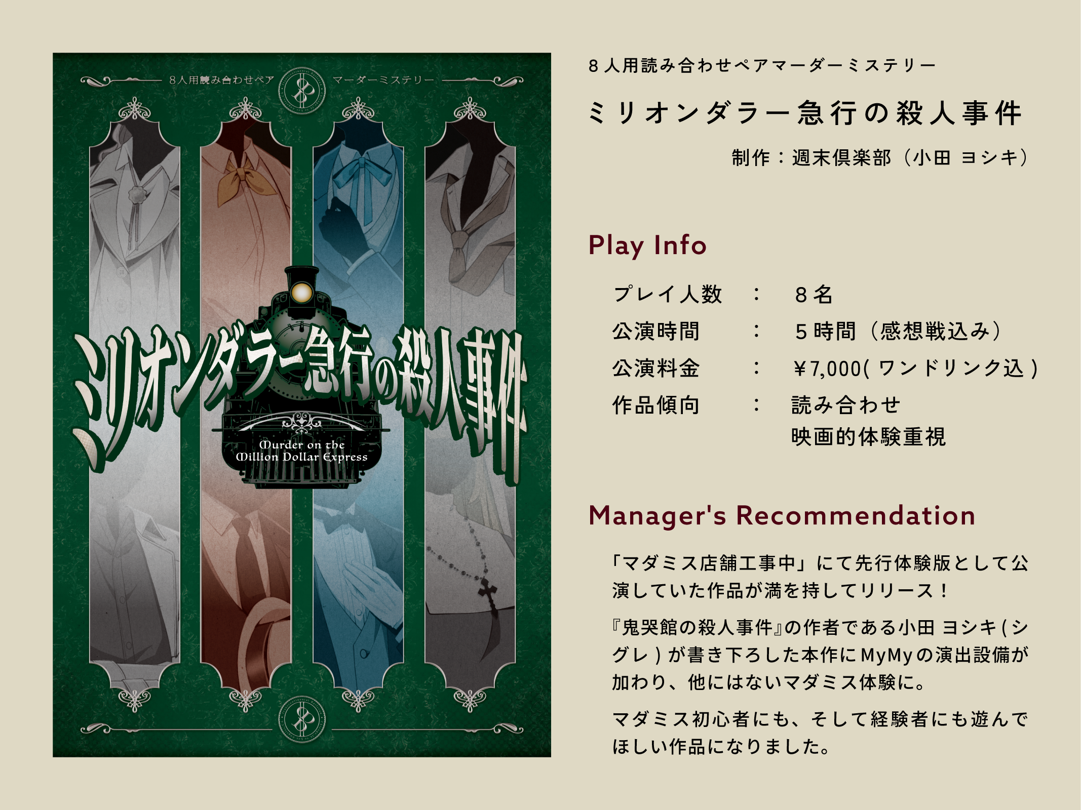 『8人用読み合わせペアマーダーミステリー ミリオンダラー急行の殺人事件』