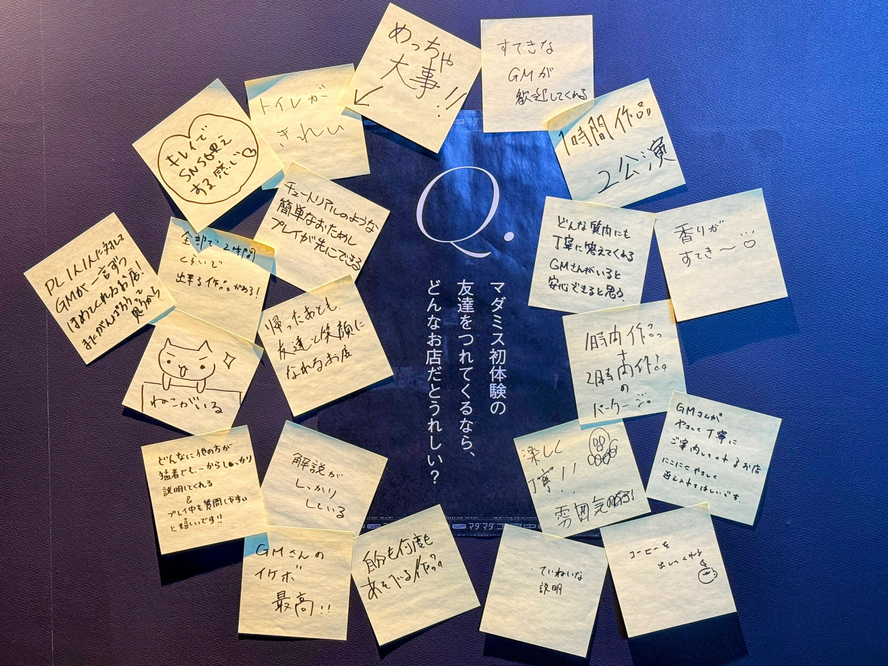 Q. マダミス初体験の友達をつれてくるなら、どんなお店だとうれしい?