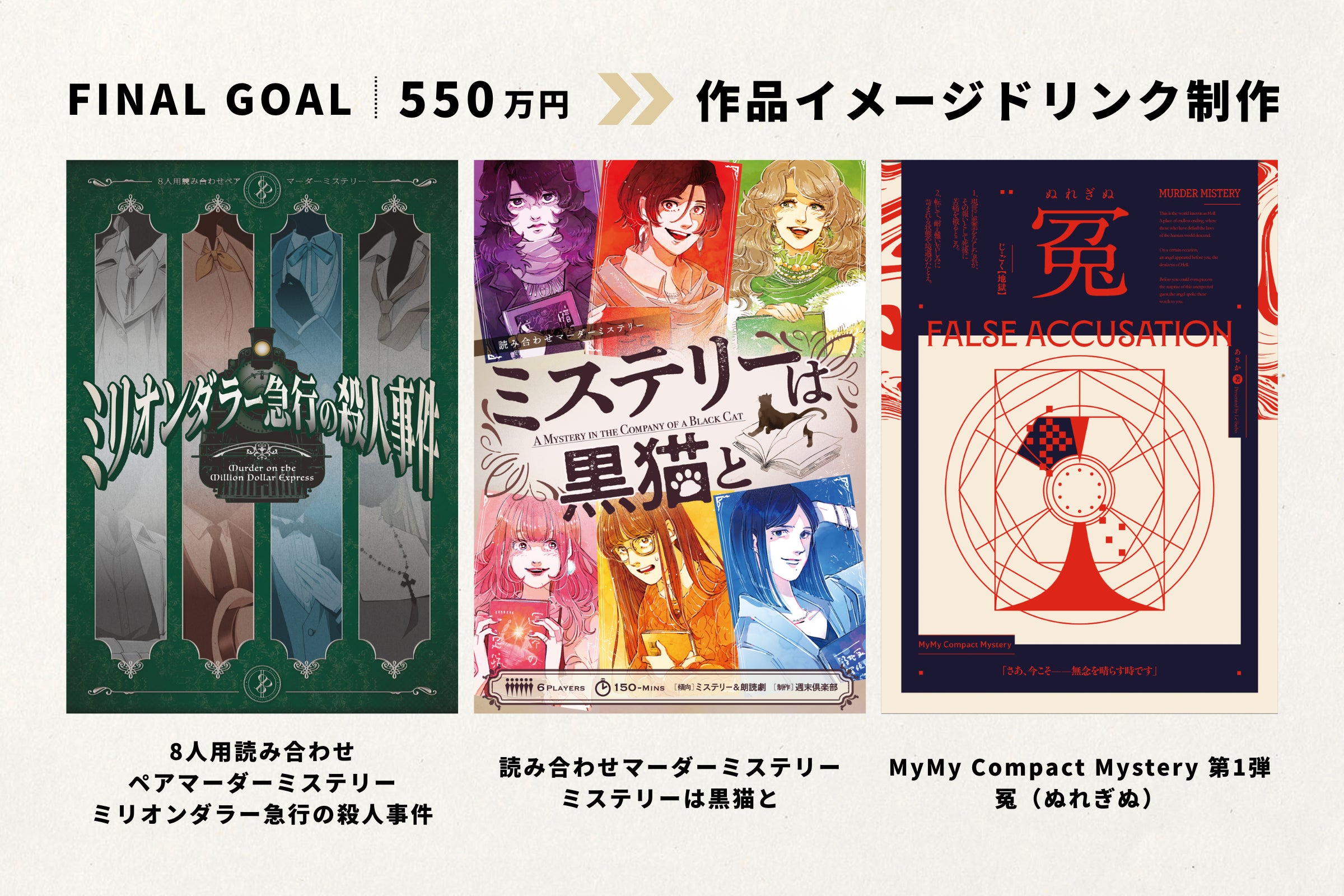 上記目標達成時、下記3作品それぞれの世界観を表現したオリジナル・イメージドリンクを制作します。