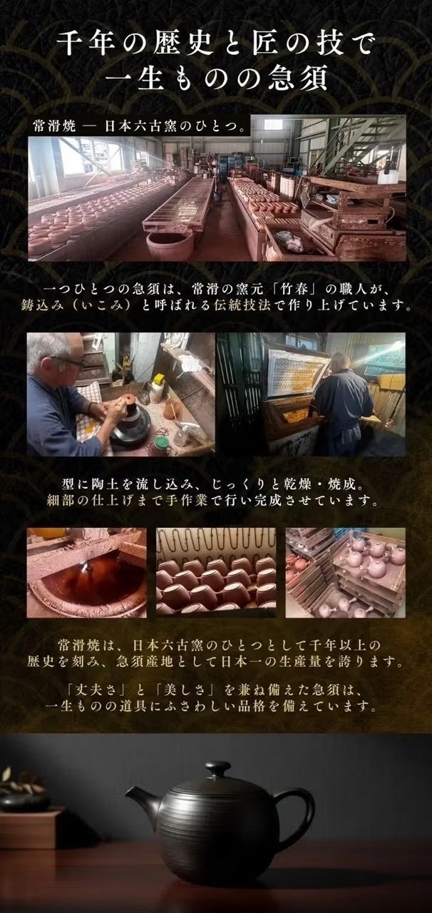 このカフェオレバリスタ急須は、愛知県常滑市の窯元「竹春」さんに焼き上げていただ