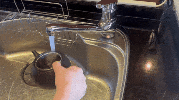 急須を回して蒸す