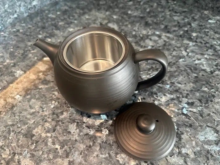 A. 急須本体は常滑焼(陶器)、フィルターは2種類ともステンレス製です。ステンレスは金属臭が出にくく、コーヒーの風味を損ないません。