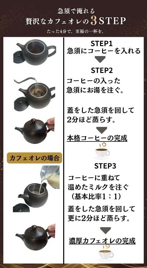 もっと見るご挨拶】カフェオレ専用急須、公開しました。きっかけは「ミルクブリュー」との出会いでした