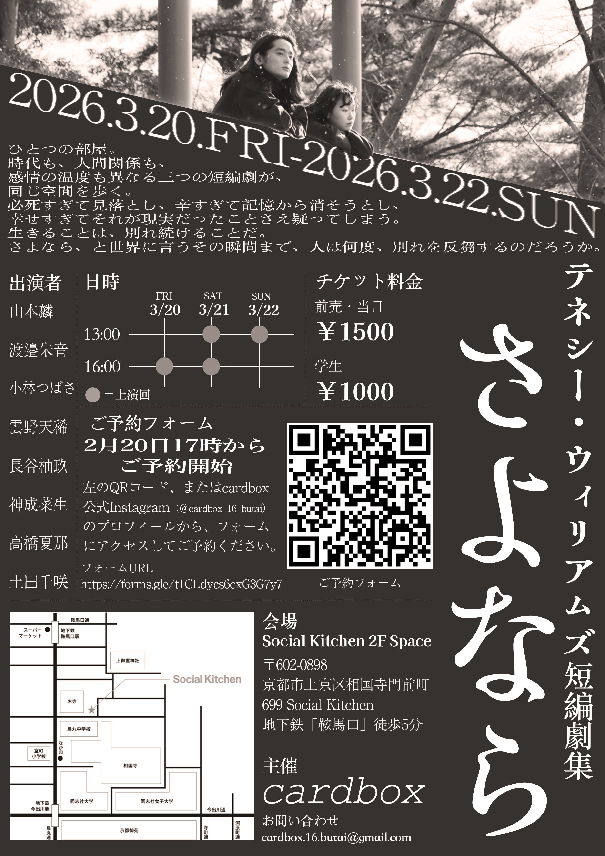 公演会場は、京都市上京区にある Social Kitchen 2F Space。