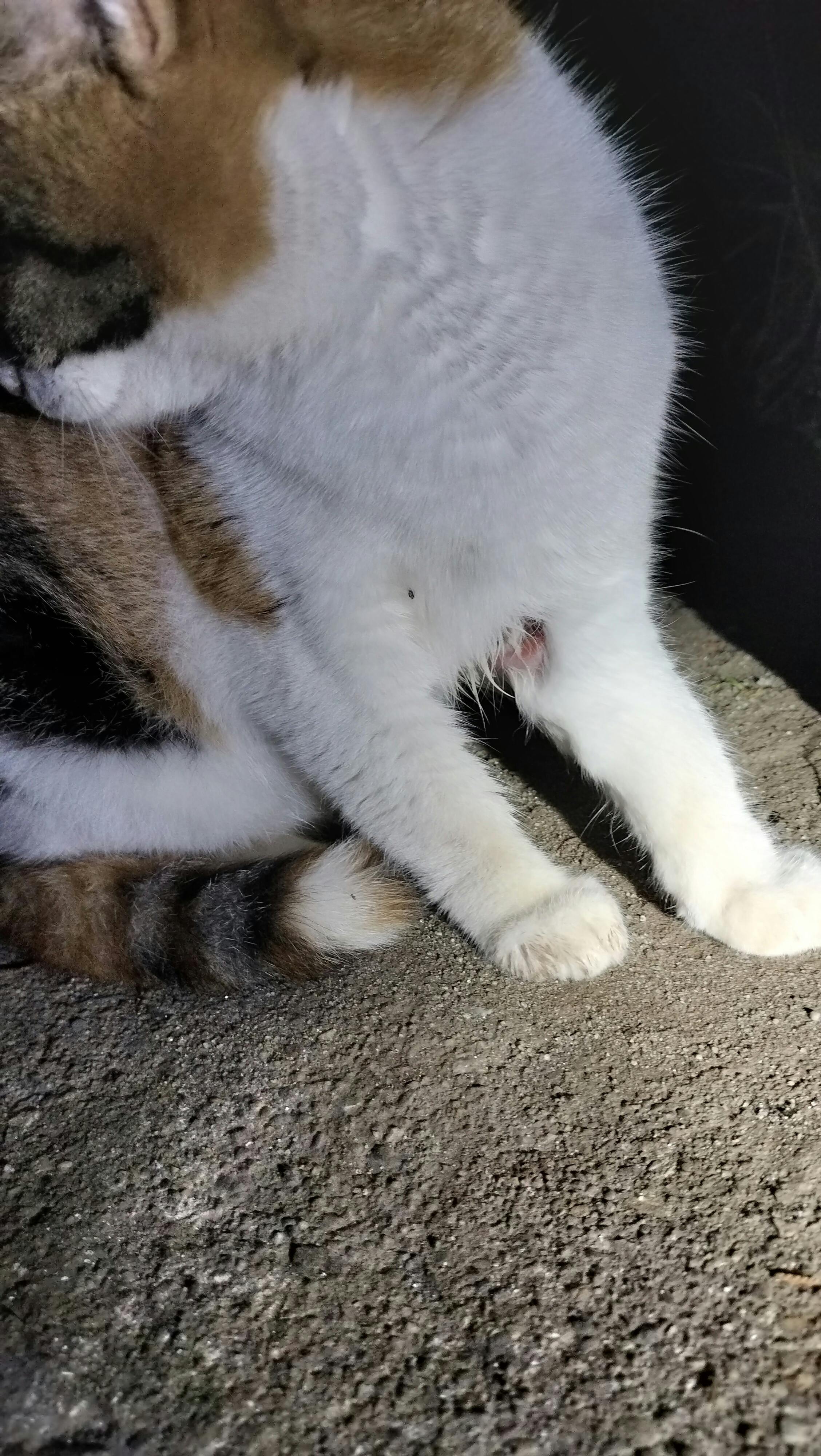 昨日家の近くの猫達の中のミケちゃんが3日間出てきていないので、前回元気がなかったので車に引かれたのかと思っていましたが、その後に元気になって姿を見せていましたが、 又3日間出て来ませんでした… 今日は心配なので、早めに餌やりに行きましたら、ゆっくりと足を上げながら出て来ました。 良かった、生きてた~と思ったのもつかの間でした。 なんと胸のあたりに化膿した大きい穴が開いてました…