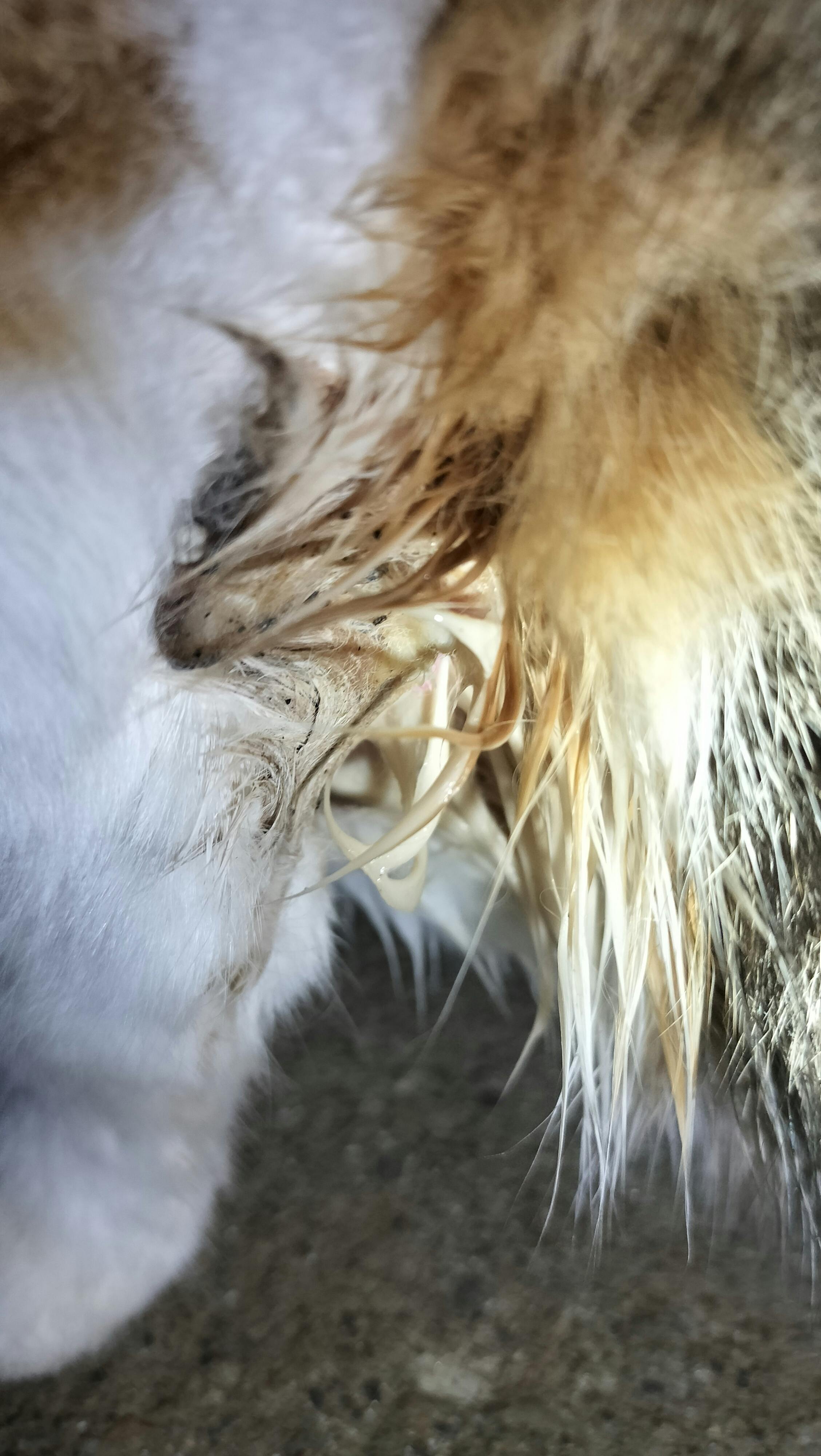 傷ぐちも広くなったようです、中から膿ごいっぱい出てきています…膿が溜まっていると、凄い痛みなのですが、膿がでてくれると痛みが和らぐのです。 本当に心配でした…倒れていたら、病院に連れて行くつもりでしたが、少し元気になってくれて良かったです。 みんな寝る所を見ると段ボールの上とかでした。本当に可哀想でした… 何か毛布を持って行こうと思いました。 仕事も長時間していますので、仕事後に外の猫達、家の猫達、なんだかとても忙しく感じていますが、誰かが世話をしてあげないと、みんな可哀想な事になってしまいますので、それも、私の使命なのかも知れません。