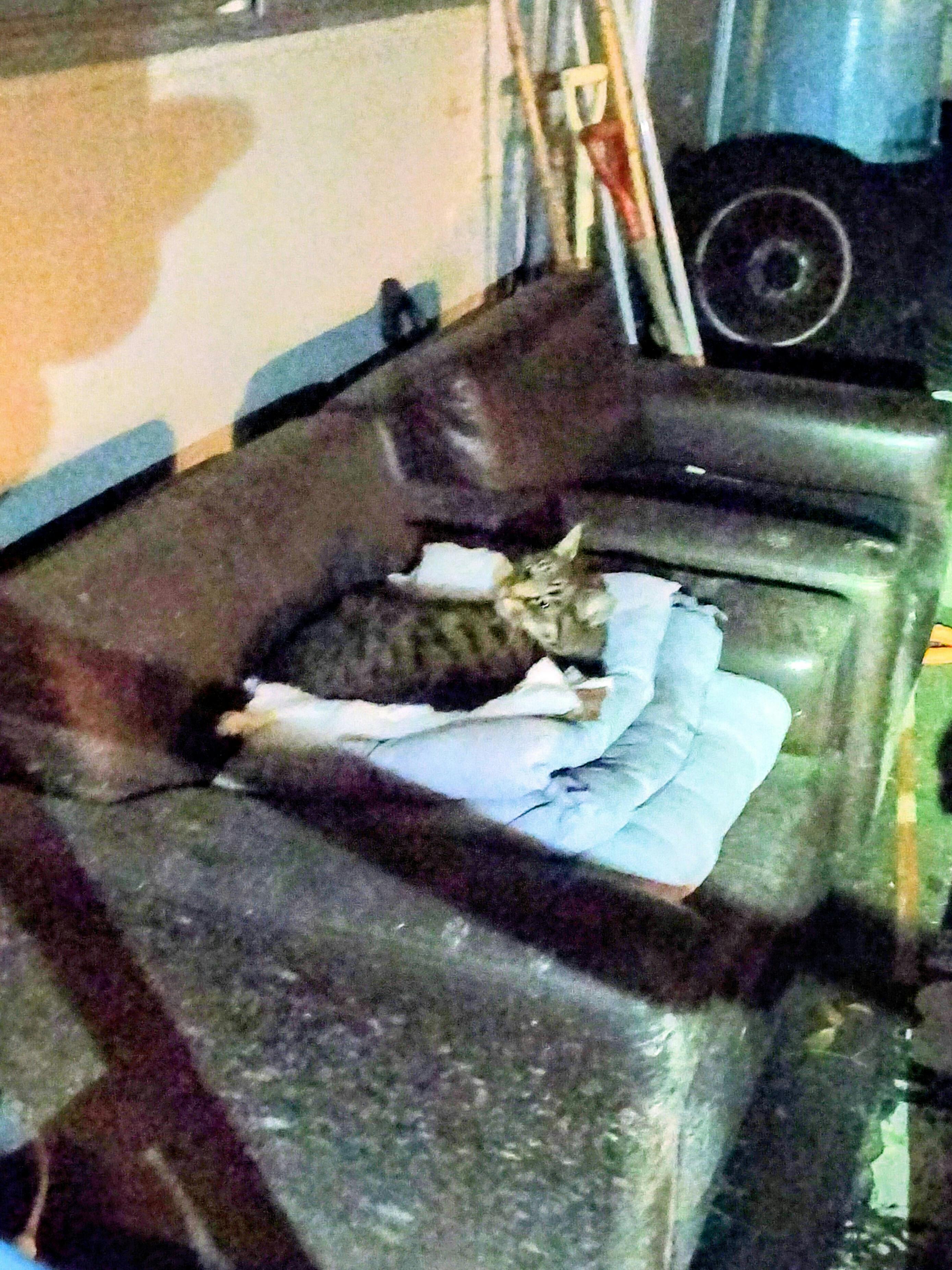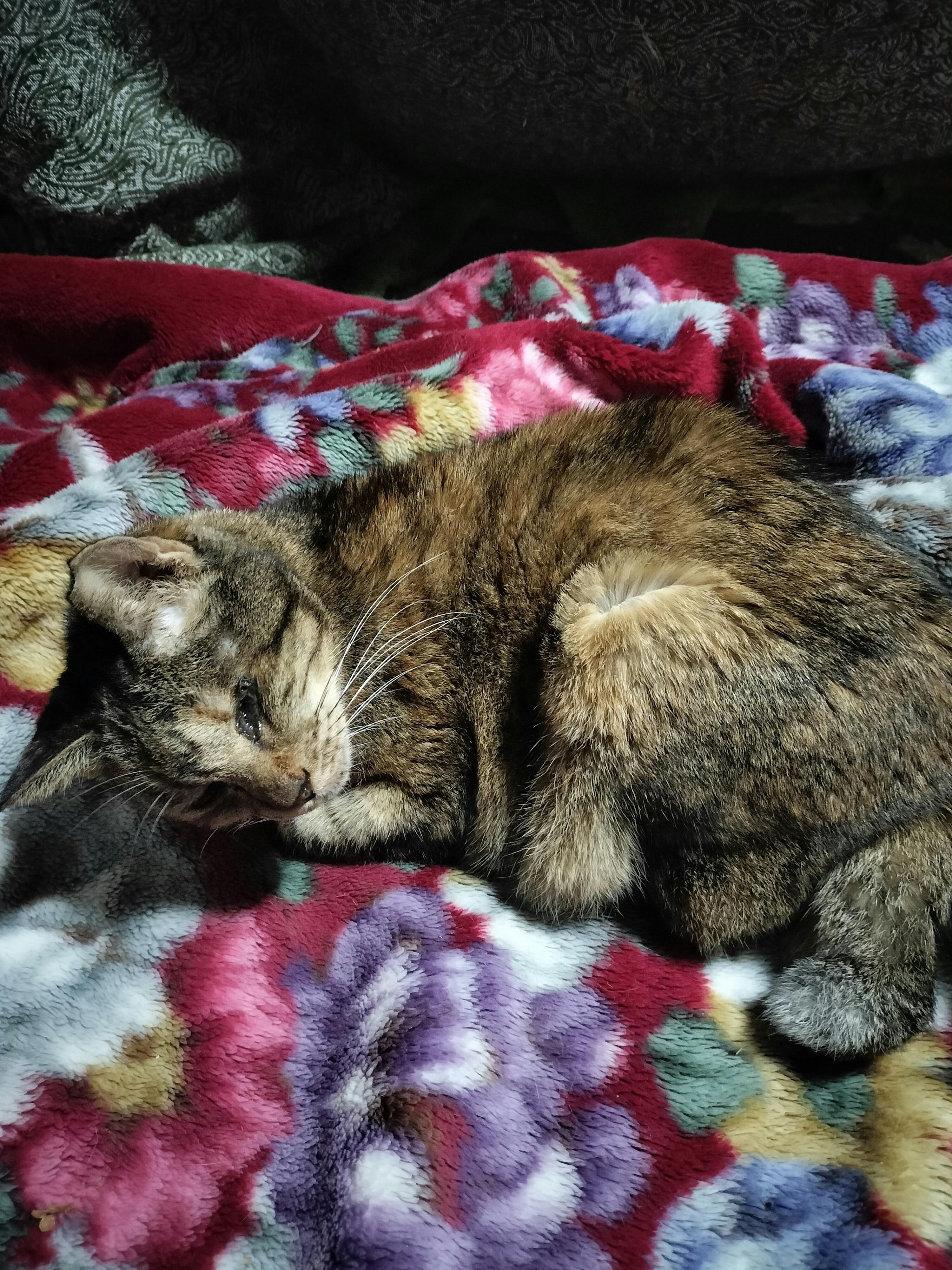 冷たい風が吹いていても、座布団の上で寝ているのです。多分寮の人が来たら、すぐに逃げられるようにしているのかも知れません。 先月風邪を引いてやっと治ったのですが、野良猫達が生きづらい世の中です…