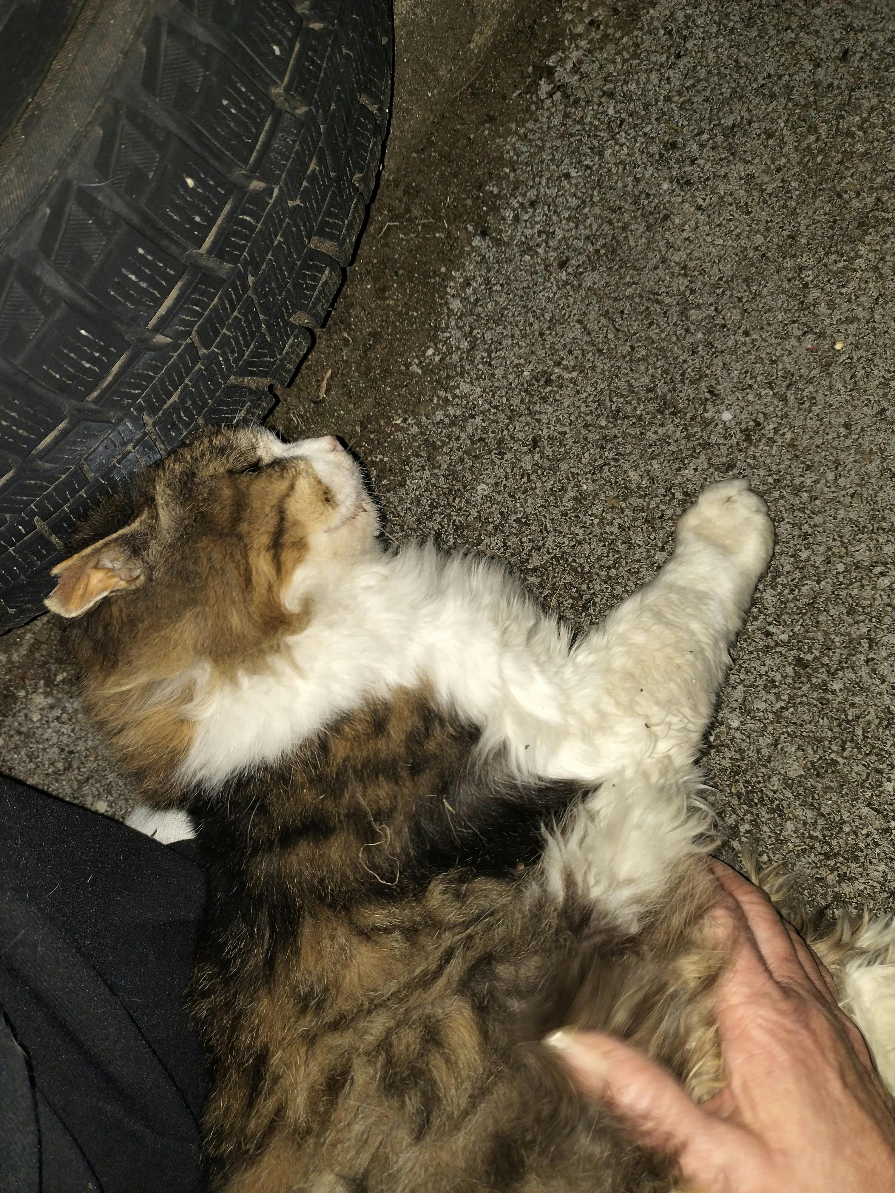 家の外の小五郎も私の車の音を聞いて小屋で寝ていてもすぐに出てくるのです。 そこで、外猫の一休君も来るので、夜中に叫び声で、ほんとに毎日ヒヤヒヤしています… 小五郎は人様の庭にウンチをするので、何かされないかと毎日生きた心地がしません… 毎日、人様の庭に行くなよ、行くなよと言い聞かせていますが、 分かってくれていないようです… 一つだけ分かったことは、小五郎は人の愛情が欲しかったのです。ずっと足元にスリスリして来ますので、撫でるとこんな感じです(◕ᴗ◕✿) 喉を触たら、両方丸い塊になっています。 喉の扁桃腺か腫れているのです… 薬を飲ませても、全部吐き出しています… 猫達は危機感を察する能力があるようですが、病気を治す為の薬は吐かれては困るのです。