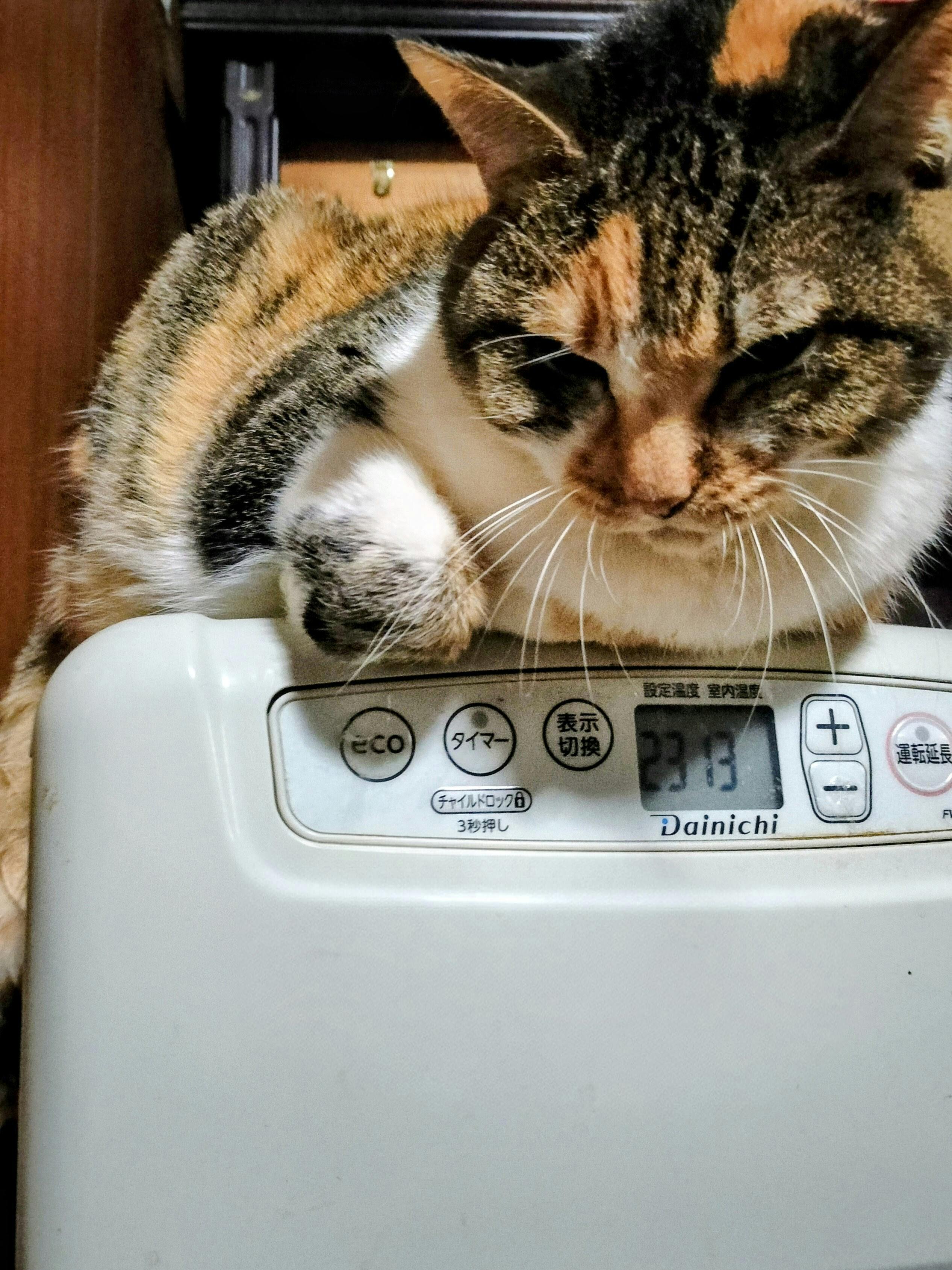 公園から保護してきたシンディーちゃんです、エアコンの上から飼い主を見下ろしています… 可愛いから許します(✿^‿^)