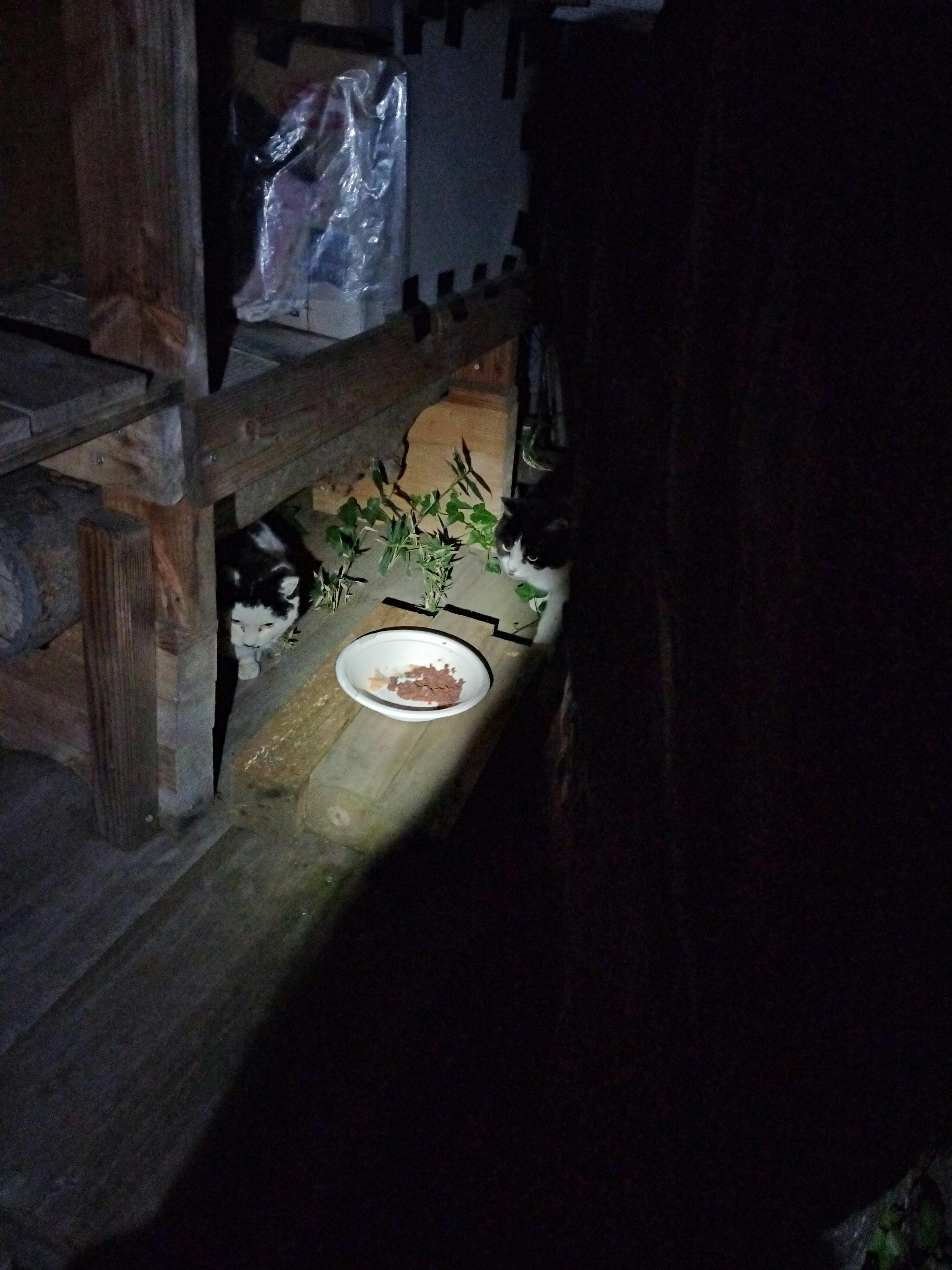 おじいちゃんの所の猫達もみんないました。おじいちゃんも生活が苦しいようで、ご飯を一回しかあげなくなりました…お皿も毎日そのままです。昨日私が入れた缶詰めが固まったままでした… おじいちゃんに五千円を置いて来ました。何かの足しになればと思いました。猫達を住まわせてくれているだけでも、本当にありがたいのです。