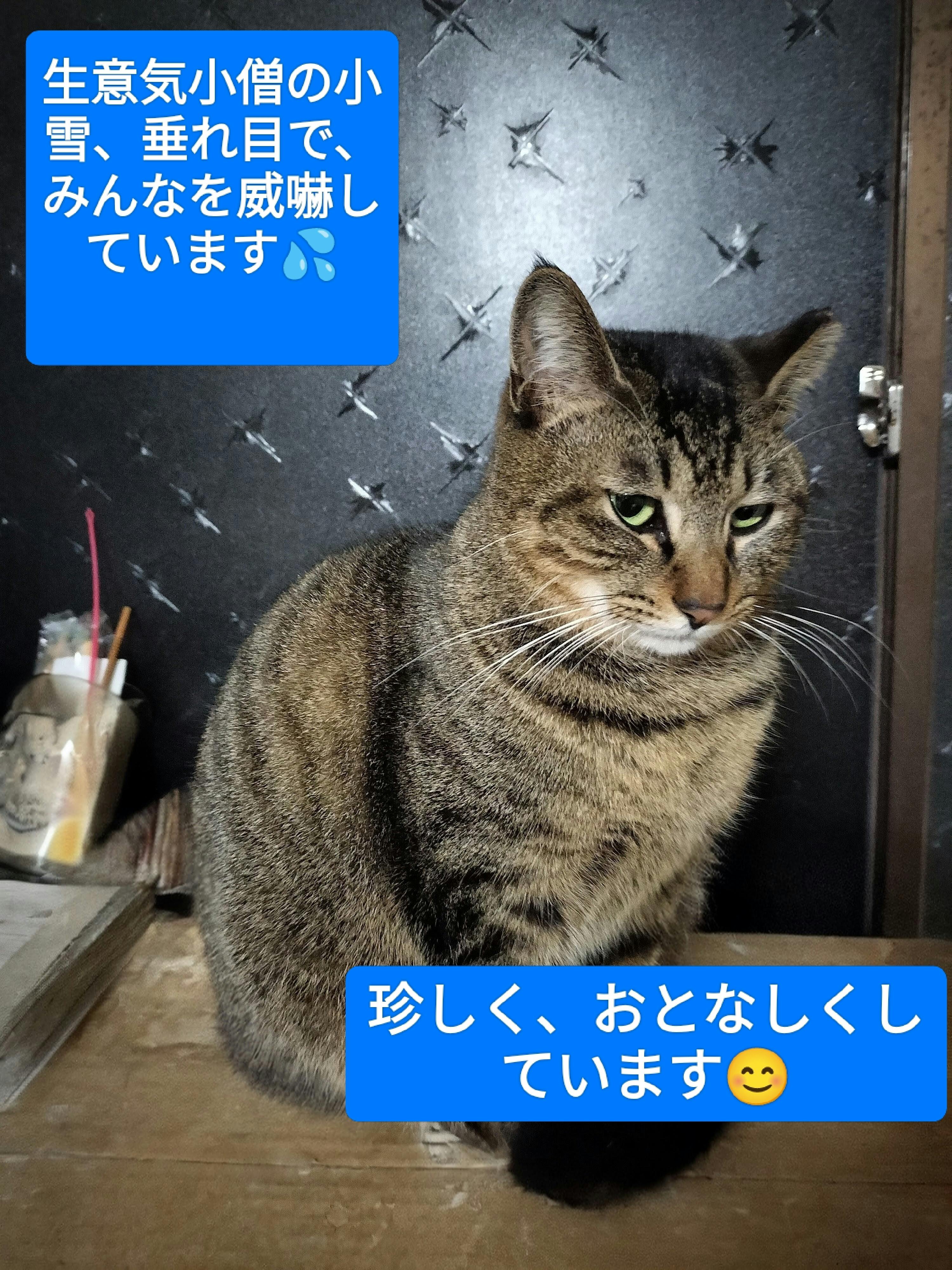 公園から引き上げてきた姉妹猫の小雪ちゃんです、公園の時は全然触らせてくれませんでしたが、今では、シンディーちゃんよりも私に馴れ馴れしくして来ます。 最後の締めがこの顔つきの悪いこになりますが、みんなと同じく愛しています(◠‿◕)