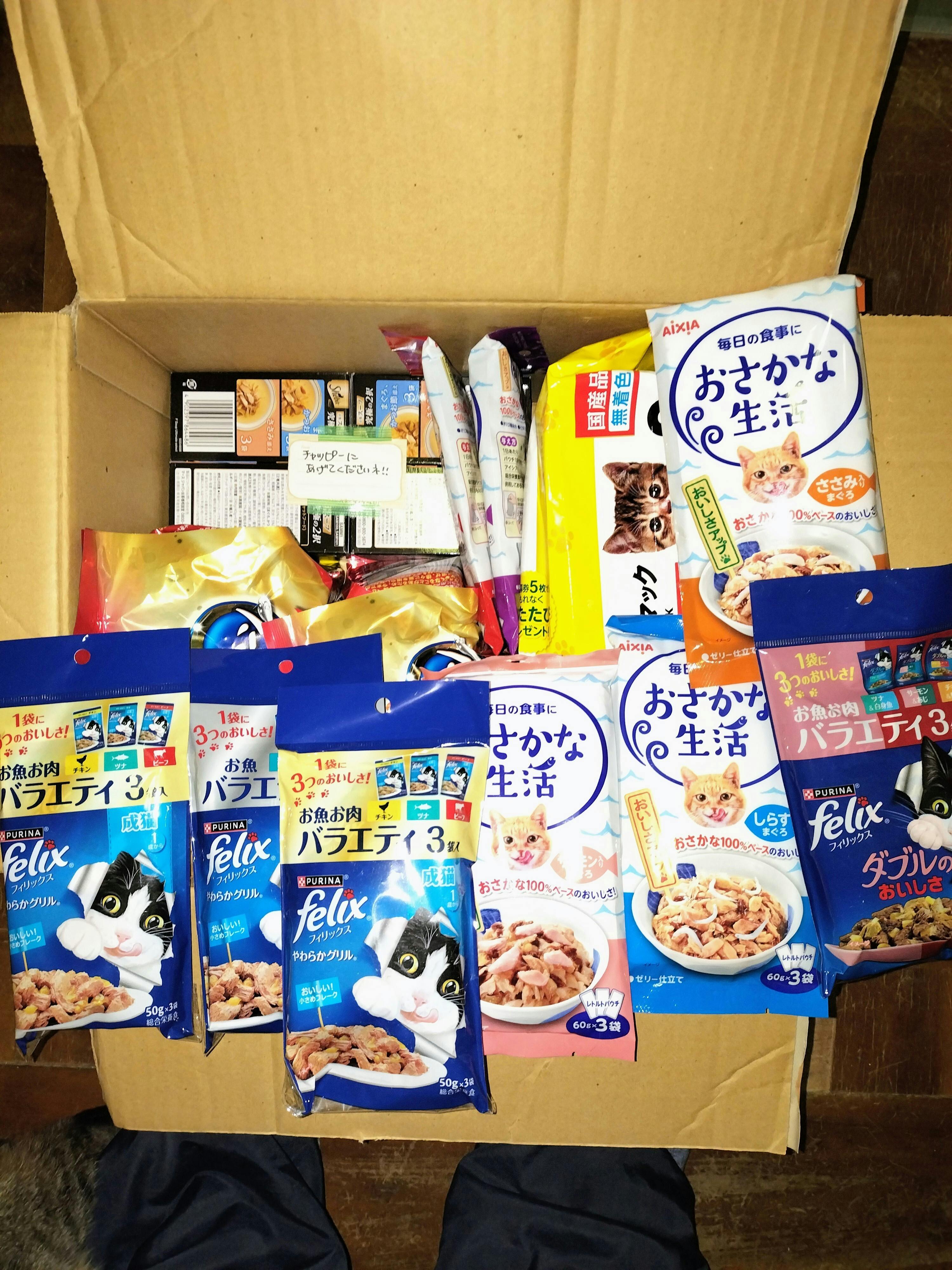支援者様方には大変感謝致します。チャッピーと他の猫達の為に沢山の支援物資ご届きました。本当にとても助かりました。 ありがとうございます。