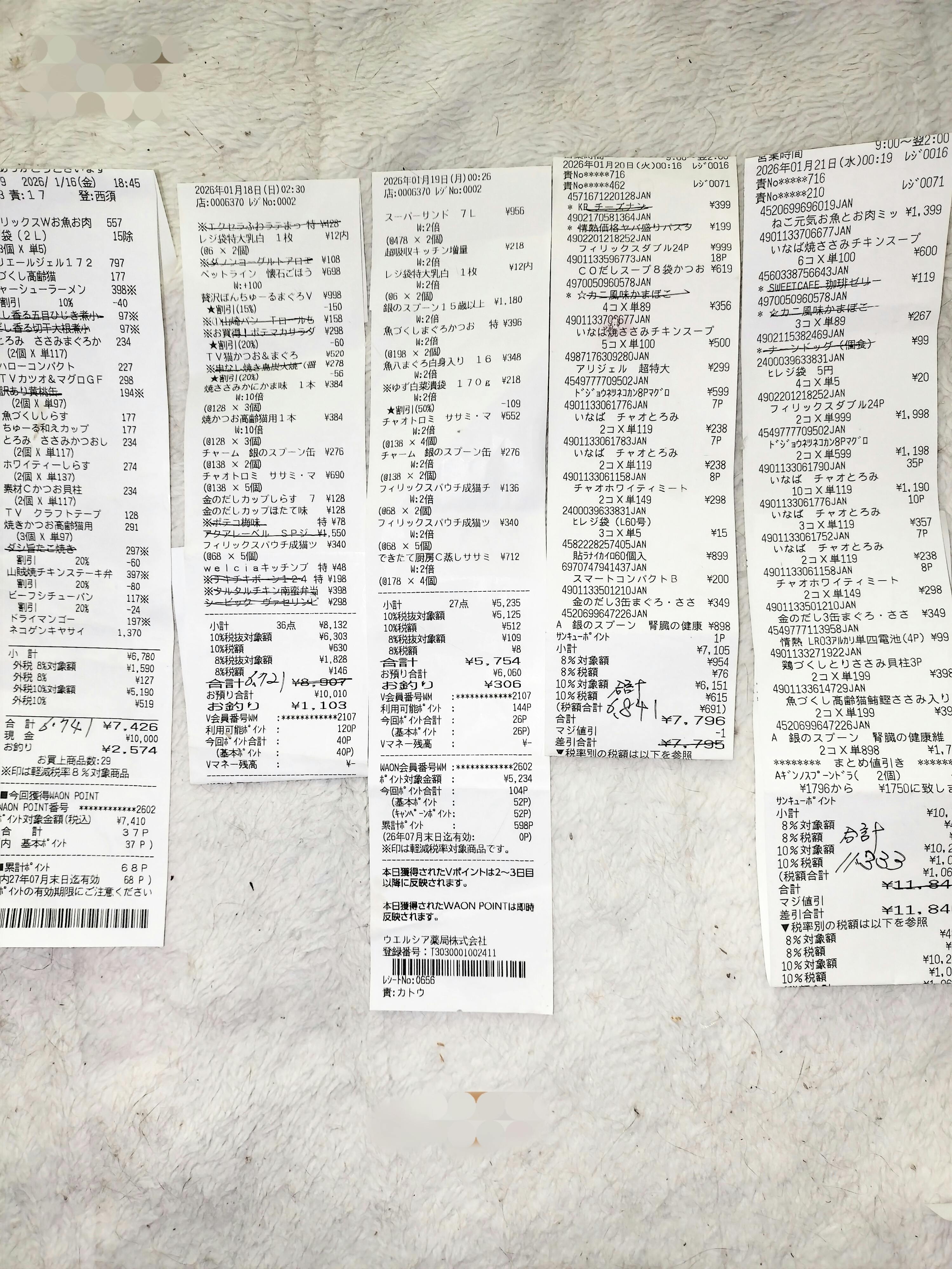 支援者様方のお陰様で、沢山の猫達のご馳走が買えました。本当に心から感謝致しています。自分の分を差し引いてありますので、少し見づらくなりました。大変申し訳ありません。