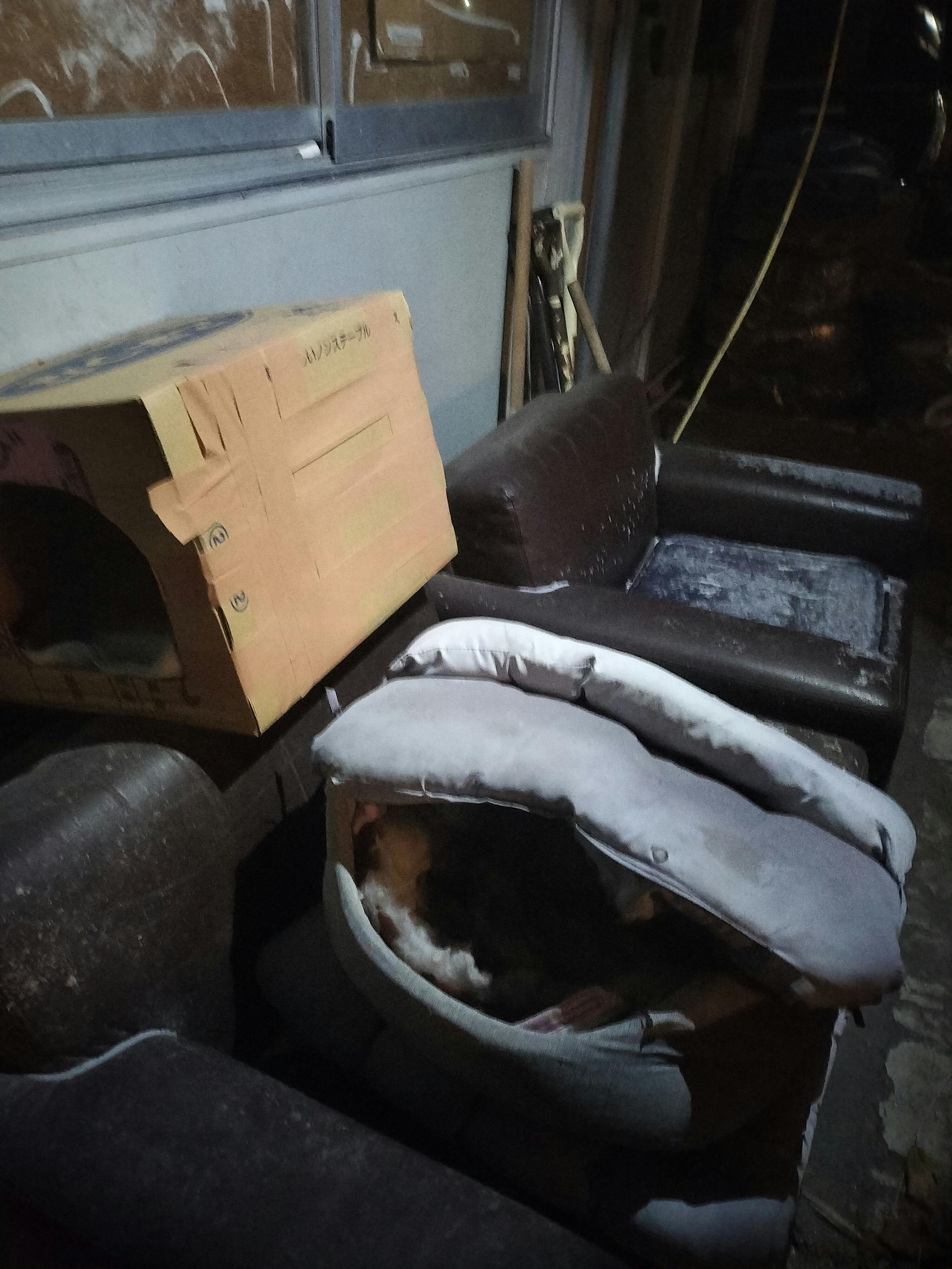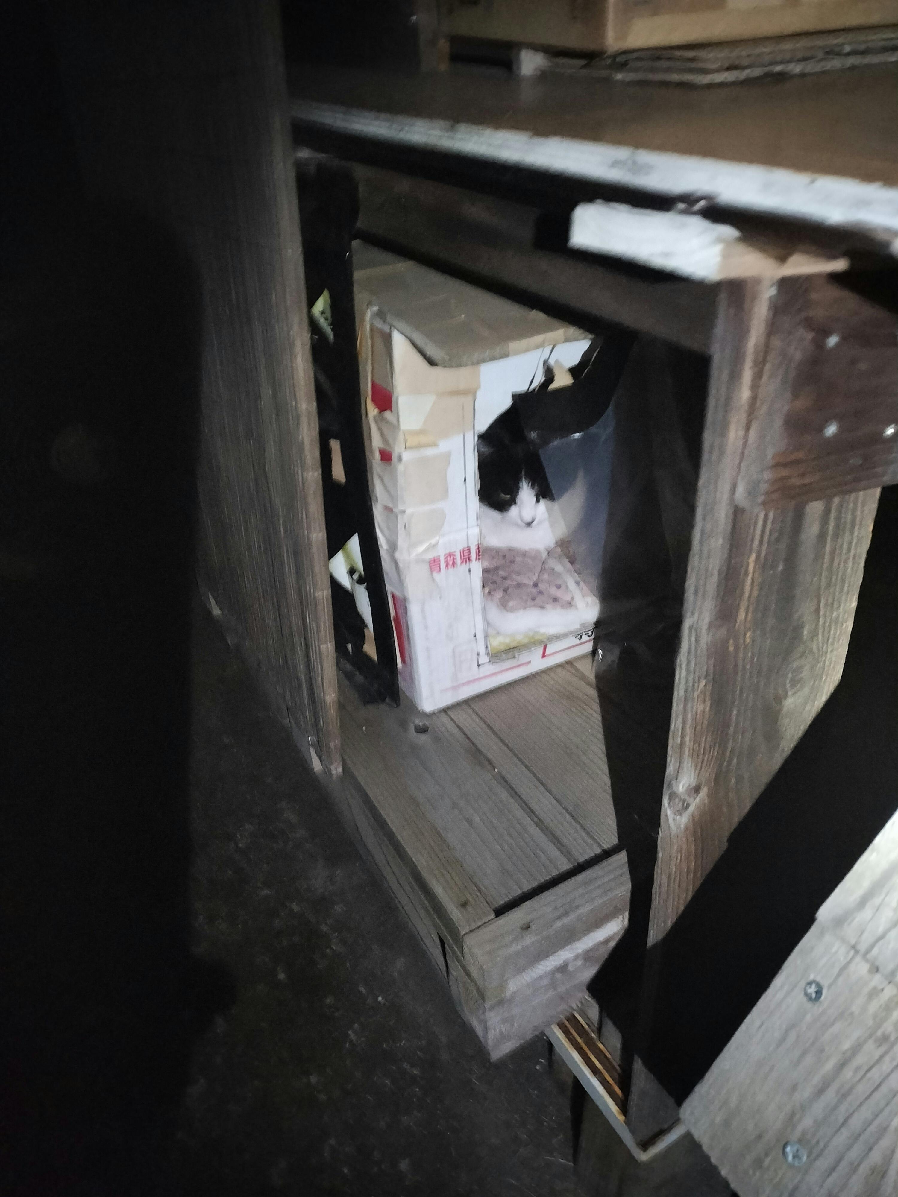建設会社の寮で暮らすグミちゃんは段ボールの小屋を作ってもらったようですが、全然入りませんでした…寝床も向きを風に当たらないようにしたようですが、次の日には、段ボールもなくなってました。寝床の向きも元通りになっていました。 ちなみにグミちゃんの名前はこちらではちびちゃんです。 黒猫のママの子供だからだと思いますが、4年前にママか突然居なくなったのです… 一人ぽっちになってしまいました(╥﹏╥)