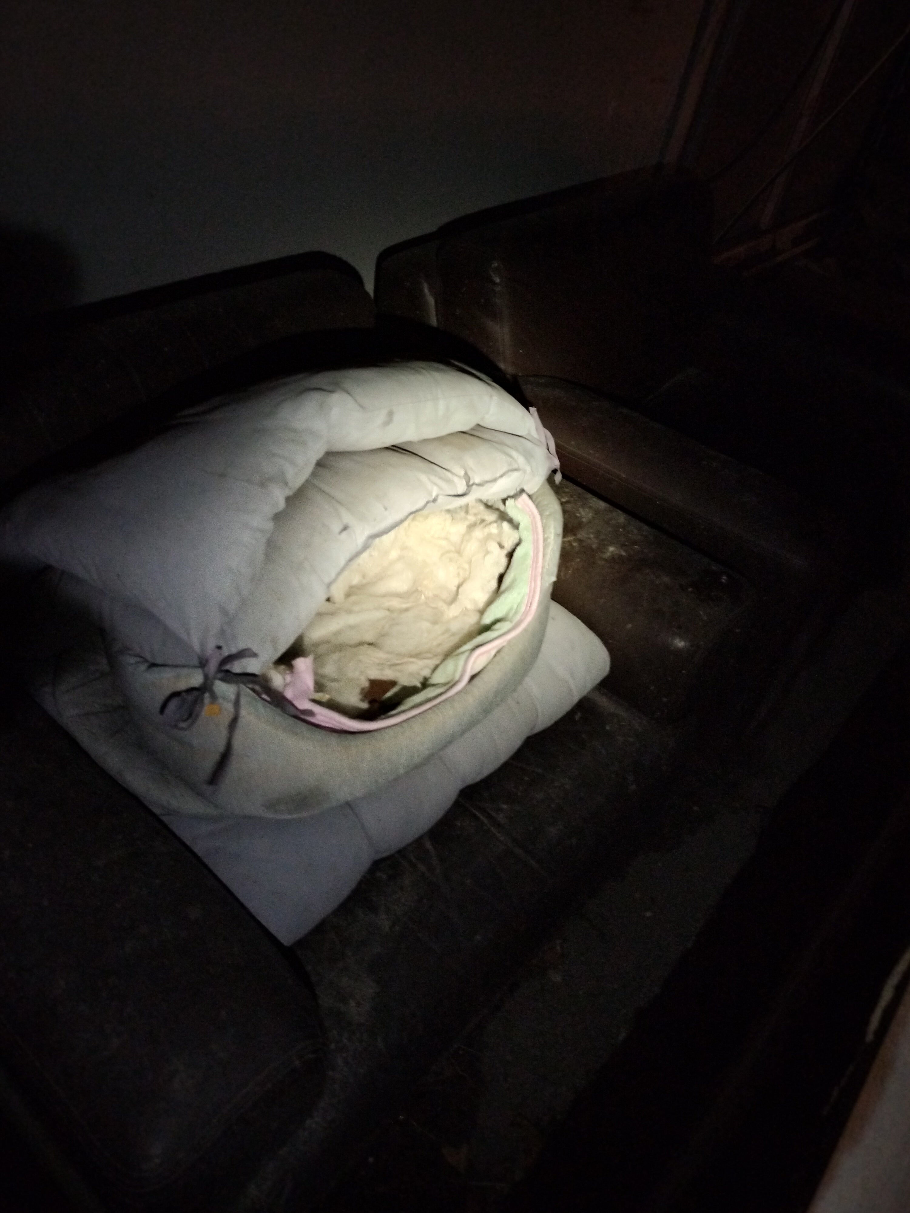 なんと、この子がグミちゃんのベッドで寝ていました… 私を見ては逃げて出て来ました。