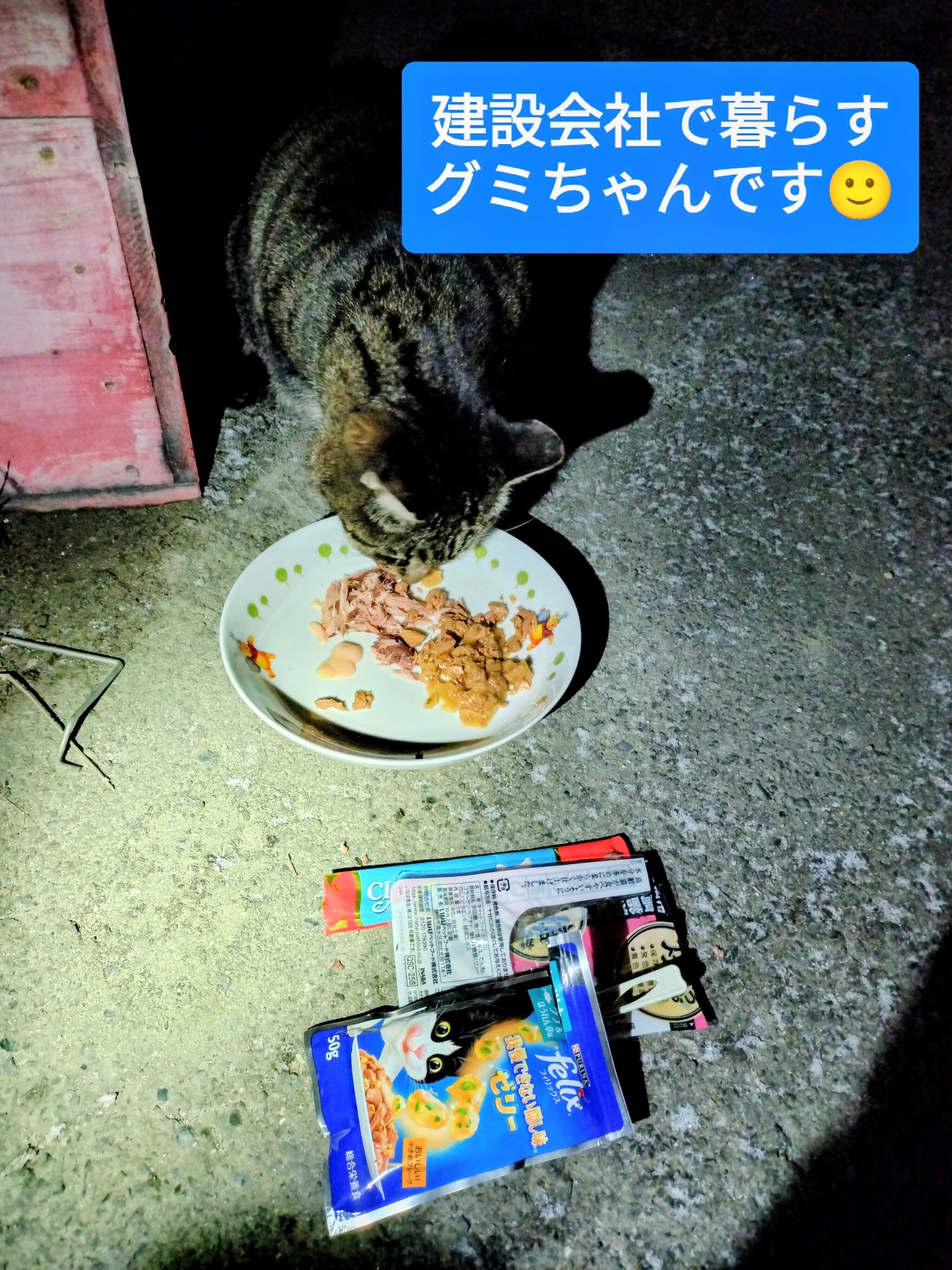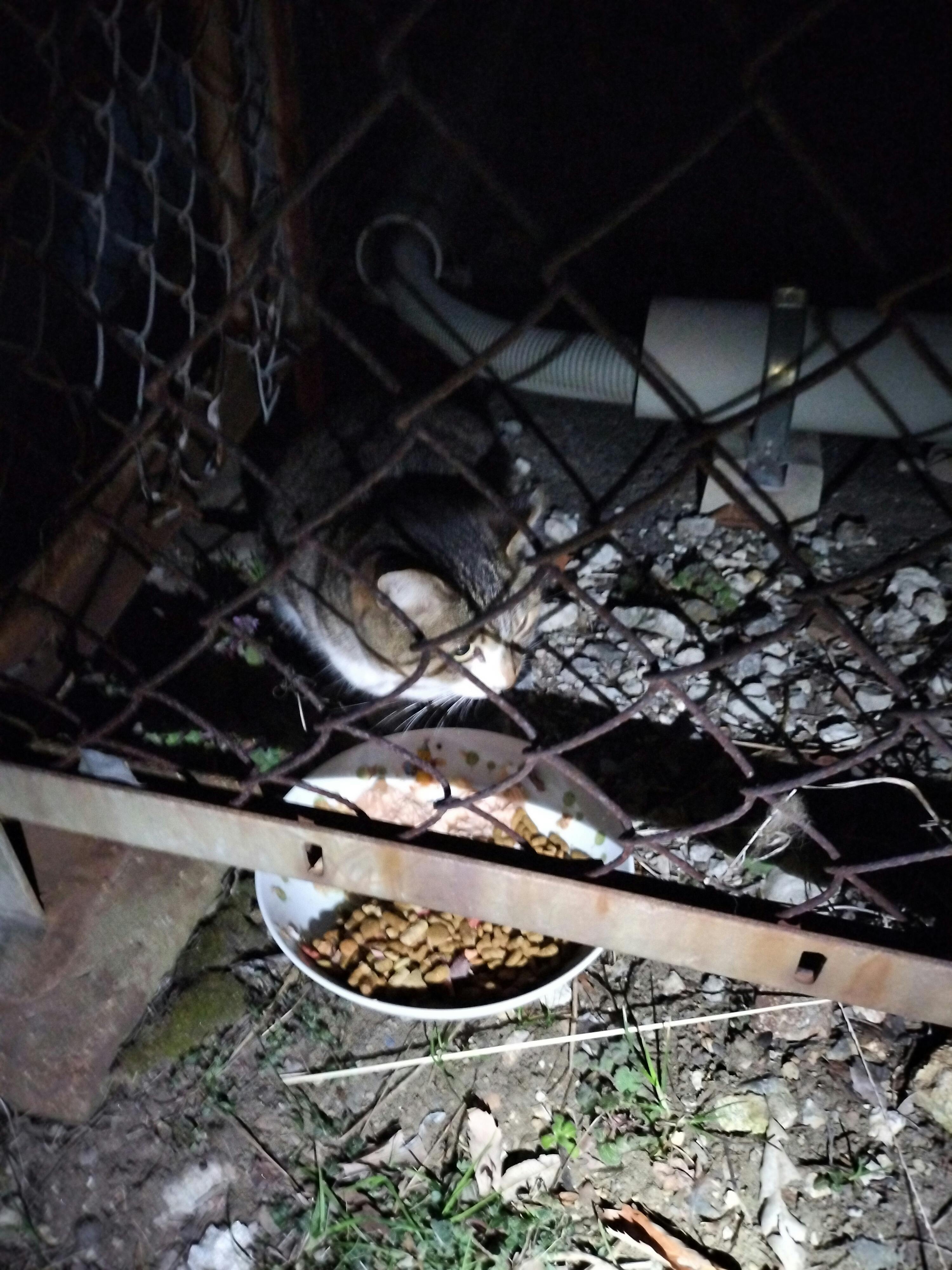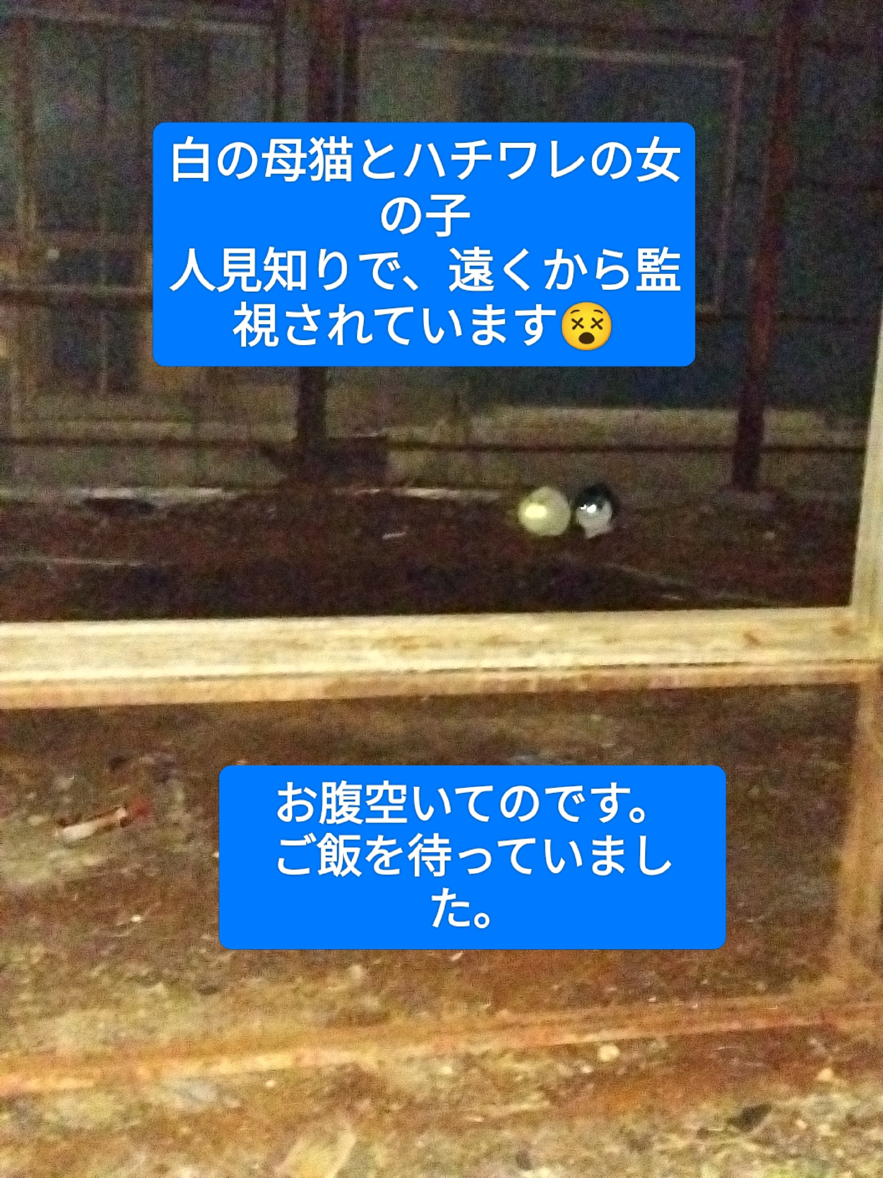 やっと母猫と娘が出て来てくれました。最近みんな居ないので、本当に心配しました。母子共に人見知りです… ご飯は置きましたので、後は全部食べて下さい~と声かけて行きました。