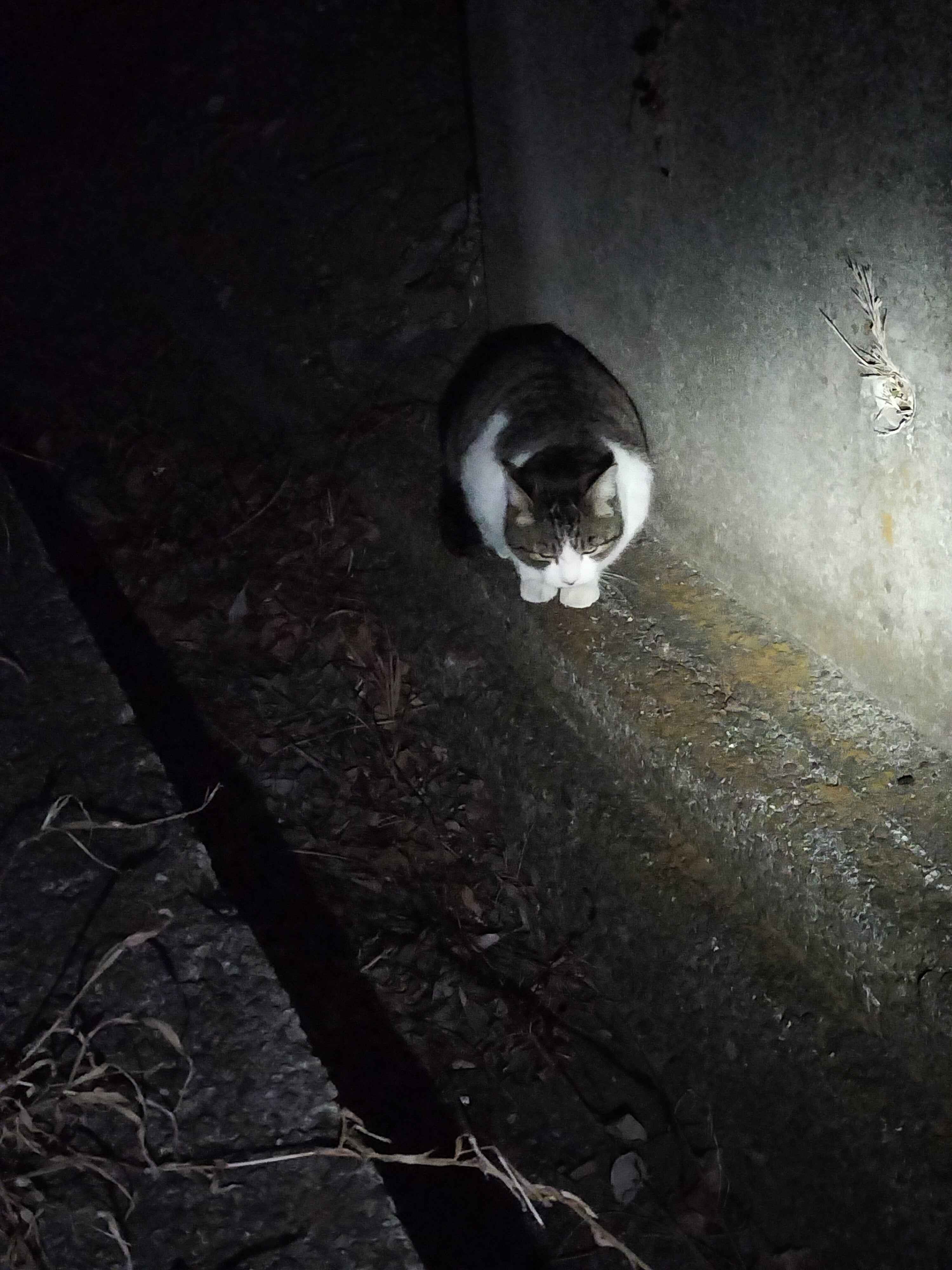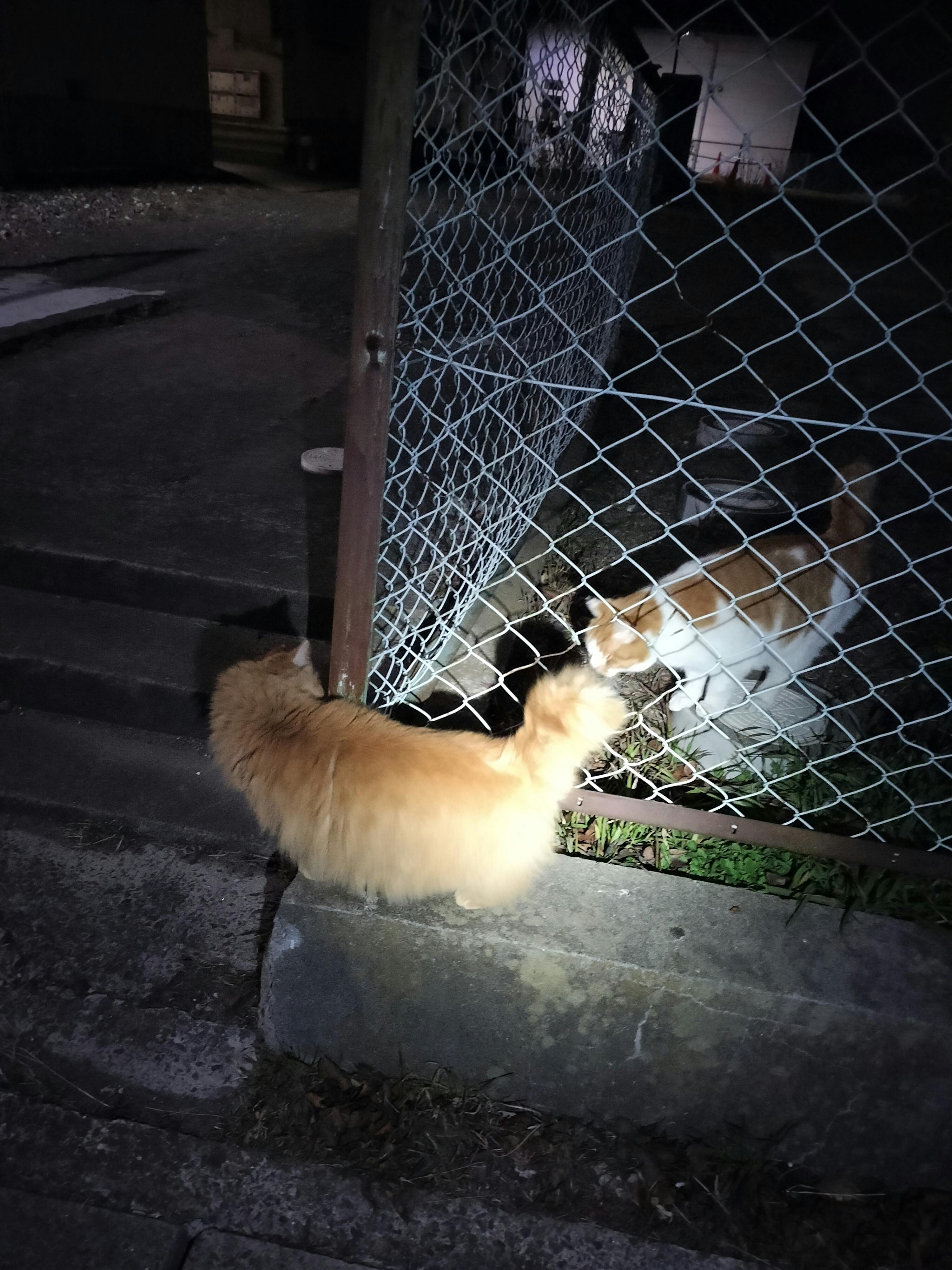 久しぶりに母猫のジュリーちゃんも出て来てくれました。竜馬も嬉しくて、かけ寄っていきました。ジュリーママはお向かいのセメント工場の中で寝ているのです。最近は夜中かかなり寒いので、あまり出てきてくれません。でも、元気で、何よりです(✿^‿^)
