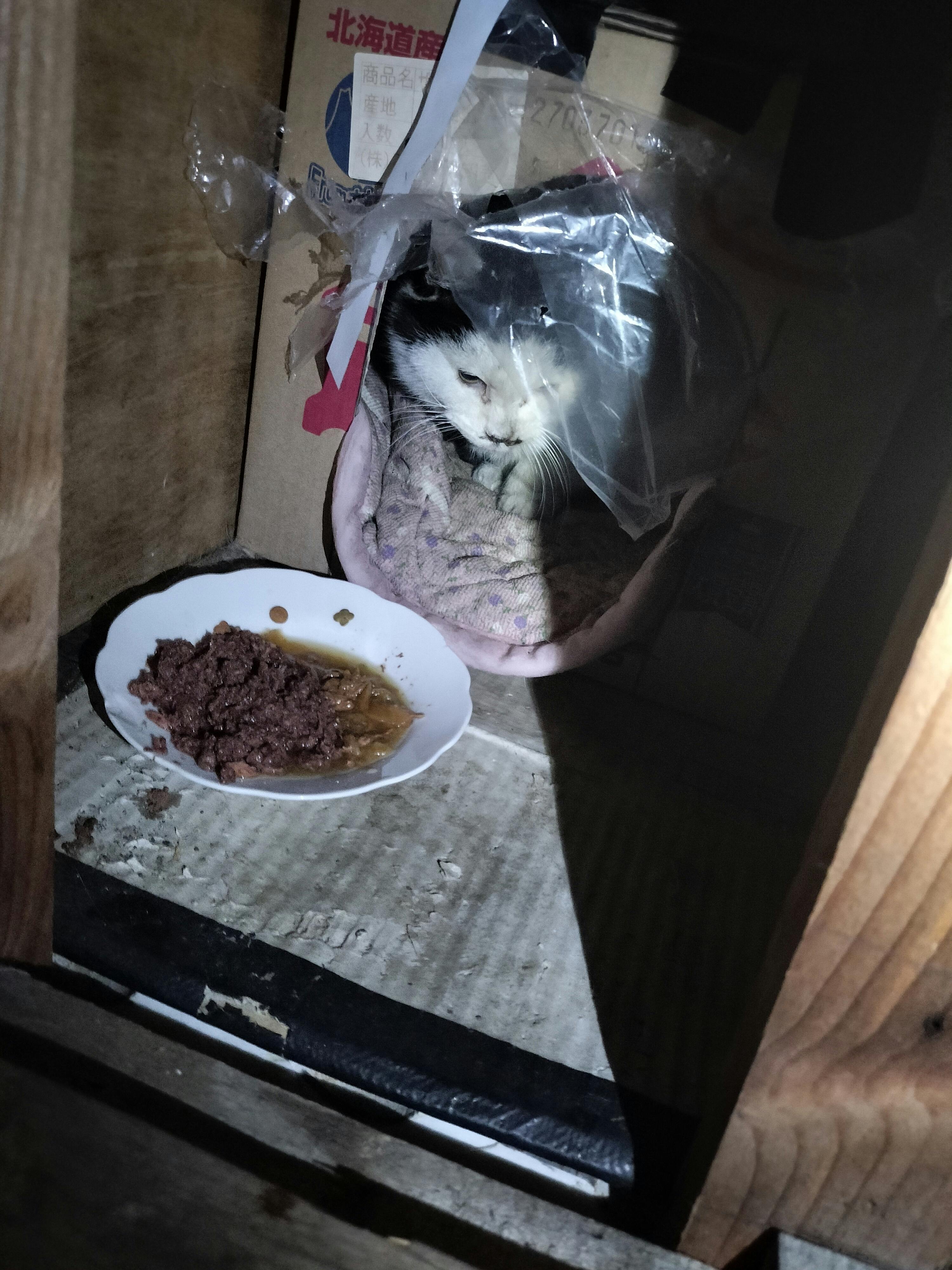 おじいちゃんの所にいるモンちゃんも、久しぶりに小屋の中に居ました。夕方におじいちゃんからご飯をもらっていないのかも知れません。 昨日からおじいちゃんに電話とラインをしましたが、ラインも見てないようです、電話にも全然出ませんでした… 部屋の中で倒れてなければ良いのですが…野良猫達の面倒を見ているのはお年寄りばかりなのです。市営住宅の方々もそうなのですが、皆さんに長生きをして欲しいと勝手ながら思っています。