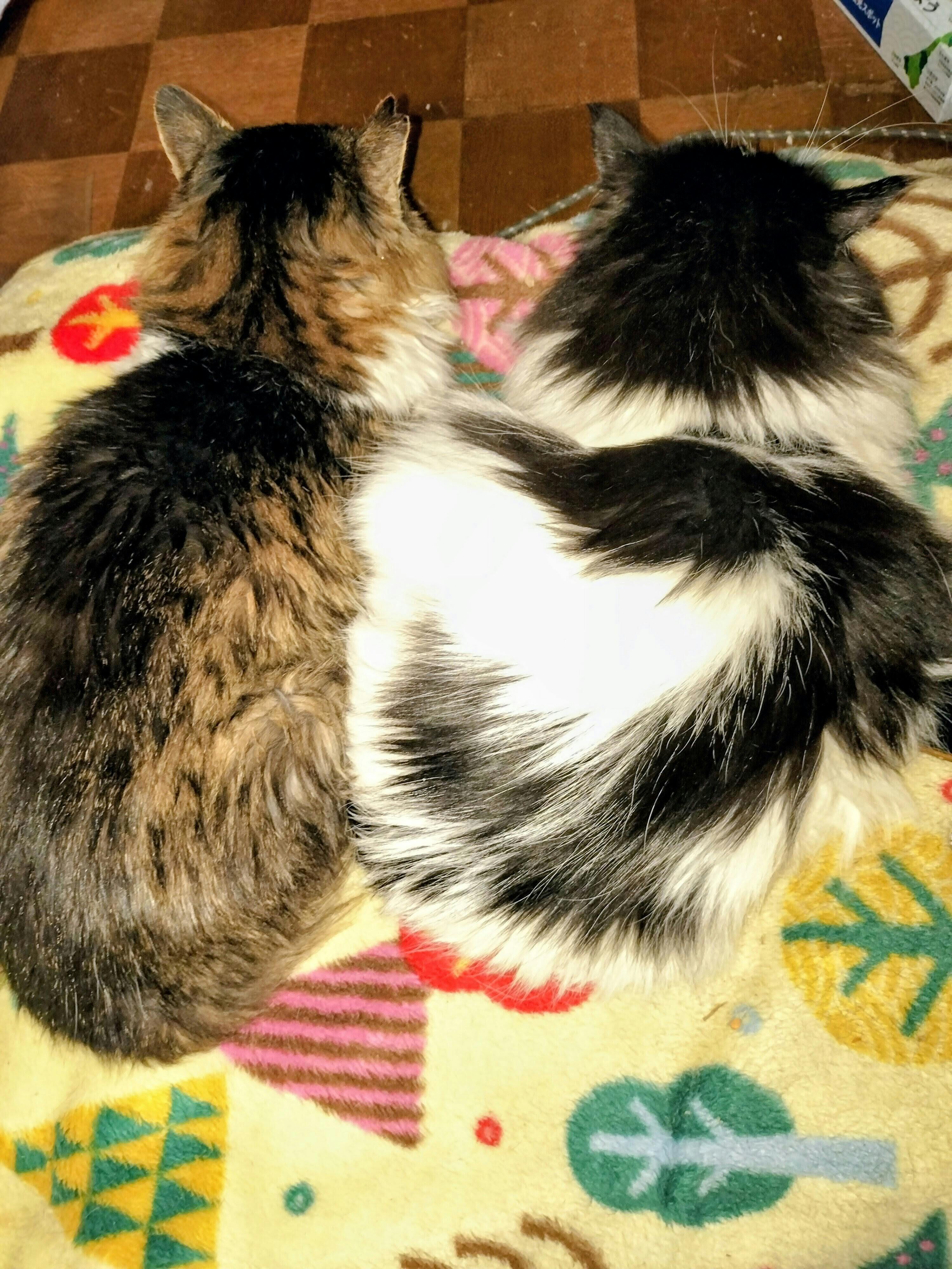 小五郎君もお友達が出来ました。同じ長毛の優しいノアちゃんです。小五郎君よりも大きく見えますが、女の子です。小五郎君も頭のあたりの毛が生えてきてましたので、凄くいい男に見えます。家の中では凄くおとなしいのです、ずっと私の枕の上で寝ているのです(◔‿◔)