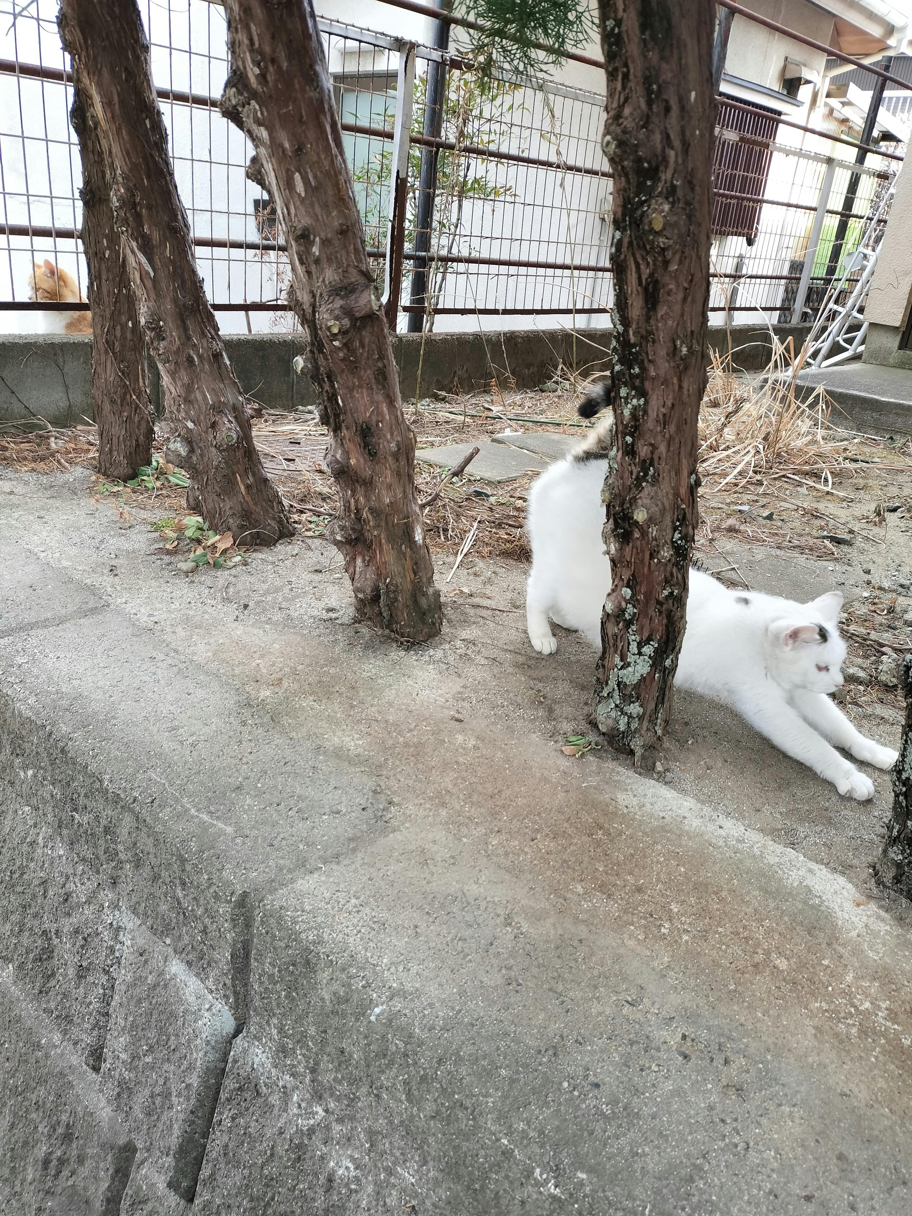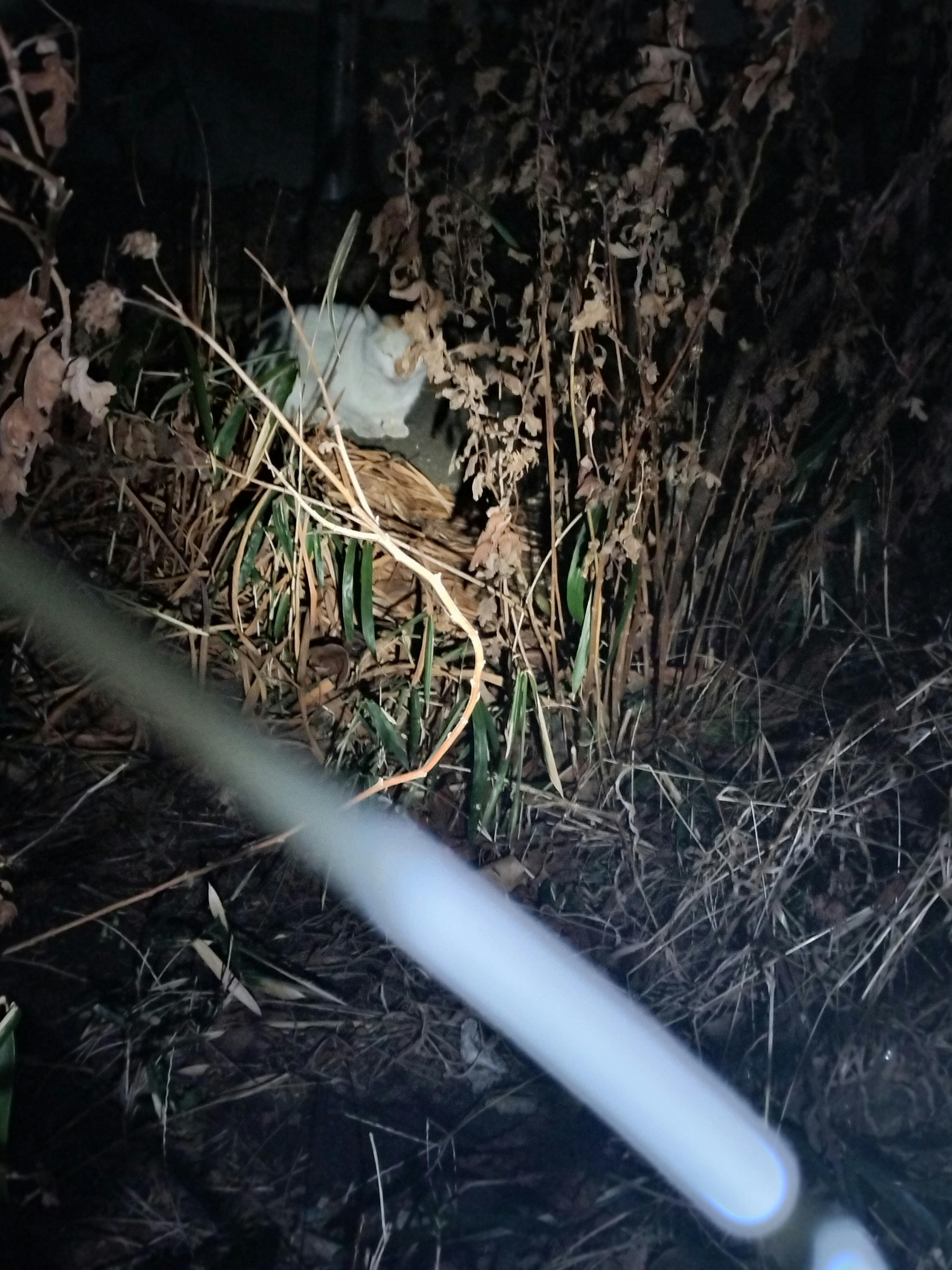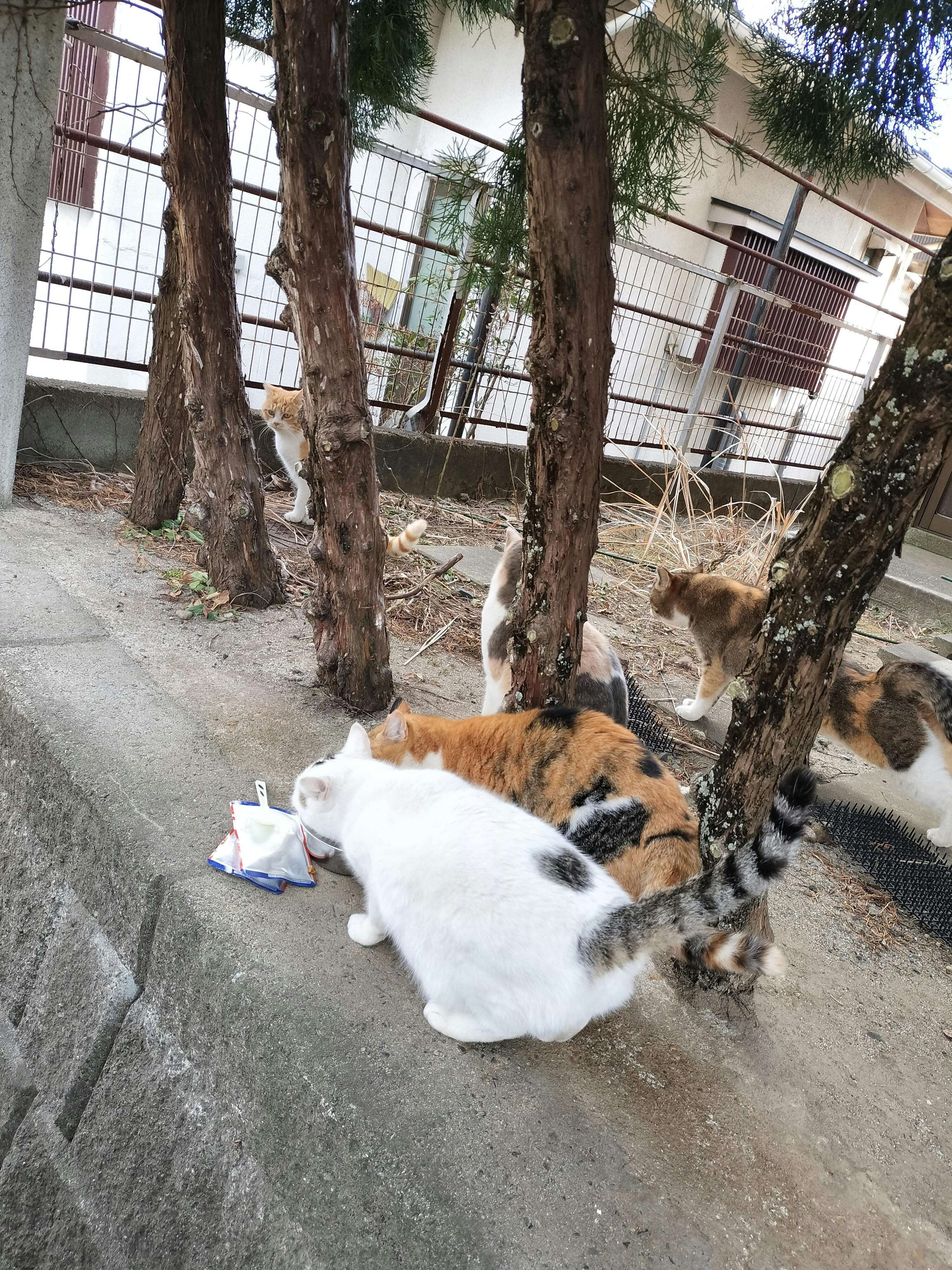家の近くの猫達も寒さに打ち勝っています。 夜中に怪しいと近所の男の方に注意されましたが、 先週夜中に車で餌やりに来ましたら、突然、その男の方が車で現れました… 又、注意されると覚悟をしていましたら、何、ボランティアなの? と聞かれました。 はい、そうですと答えると、近くの木の上で亡くなった人が居るのは知らないの? 怖くないの?と言うのです。 教えてやるから一緒に来てとの事でした。 場所はすぐ近くでした。話をしてみましたら、動物を好きな方でした。 猫達の餌やりをしても、警察は来ませんと言われました。昔はもっと沢山の猫達がいたそうです。おばちゃんが餌をあげていたとのことでした。 何かあったら、家に来ても良いと言われました。 夜遅くまで仕事をしている様でした。 胸のモヤモヤがやっと晴れました。