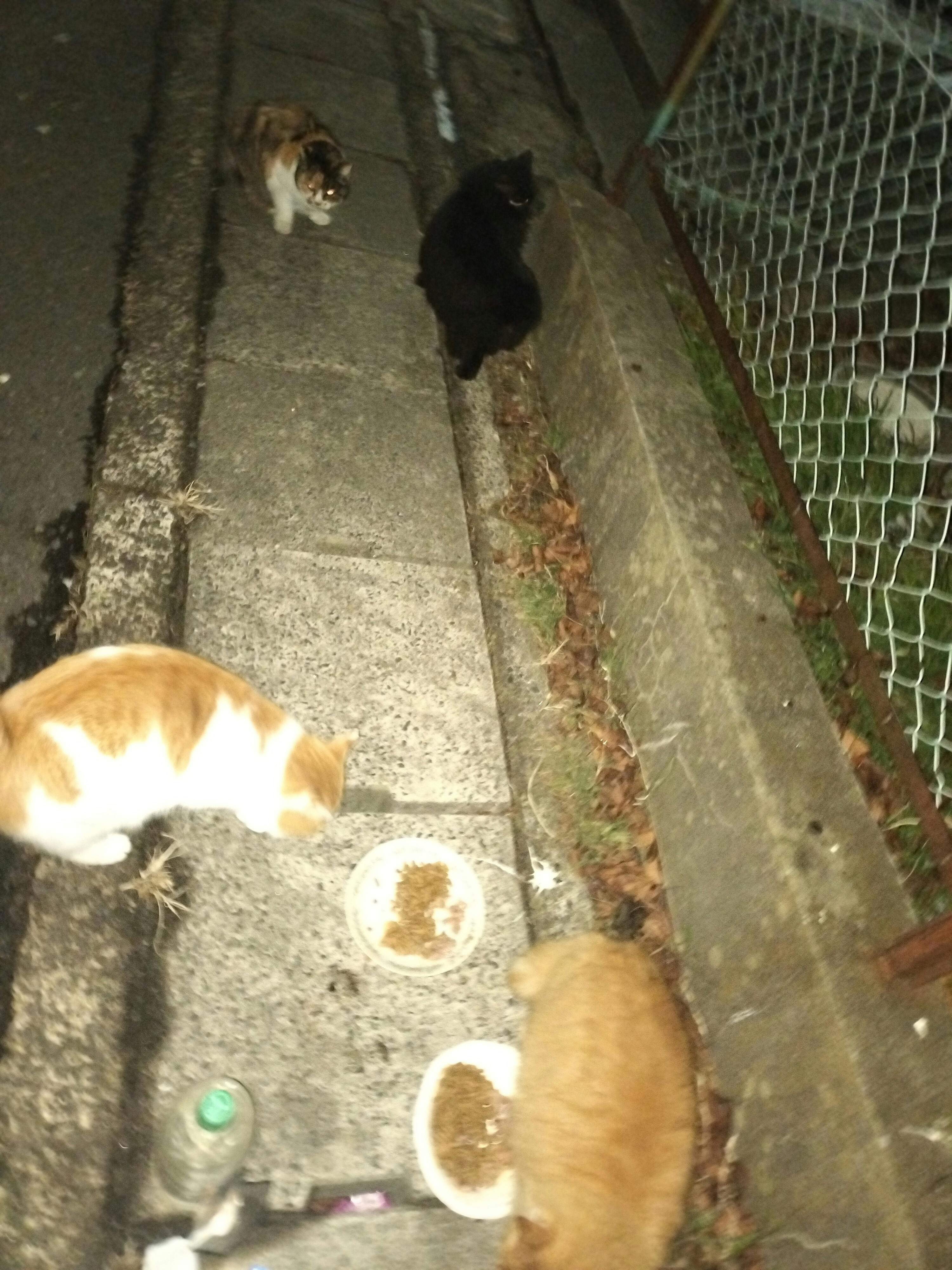 チョビひげちゃんも最近出て来なかったのですが、一昨日は暖かったので、出てきていました。本当に良かったです。女の子です。す 別の二匹も近くでご飯を待っていました。3匹分を置いて来ました。ちゃんとご飯をもらえなかったのかなぁと思いました。