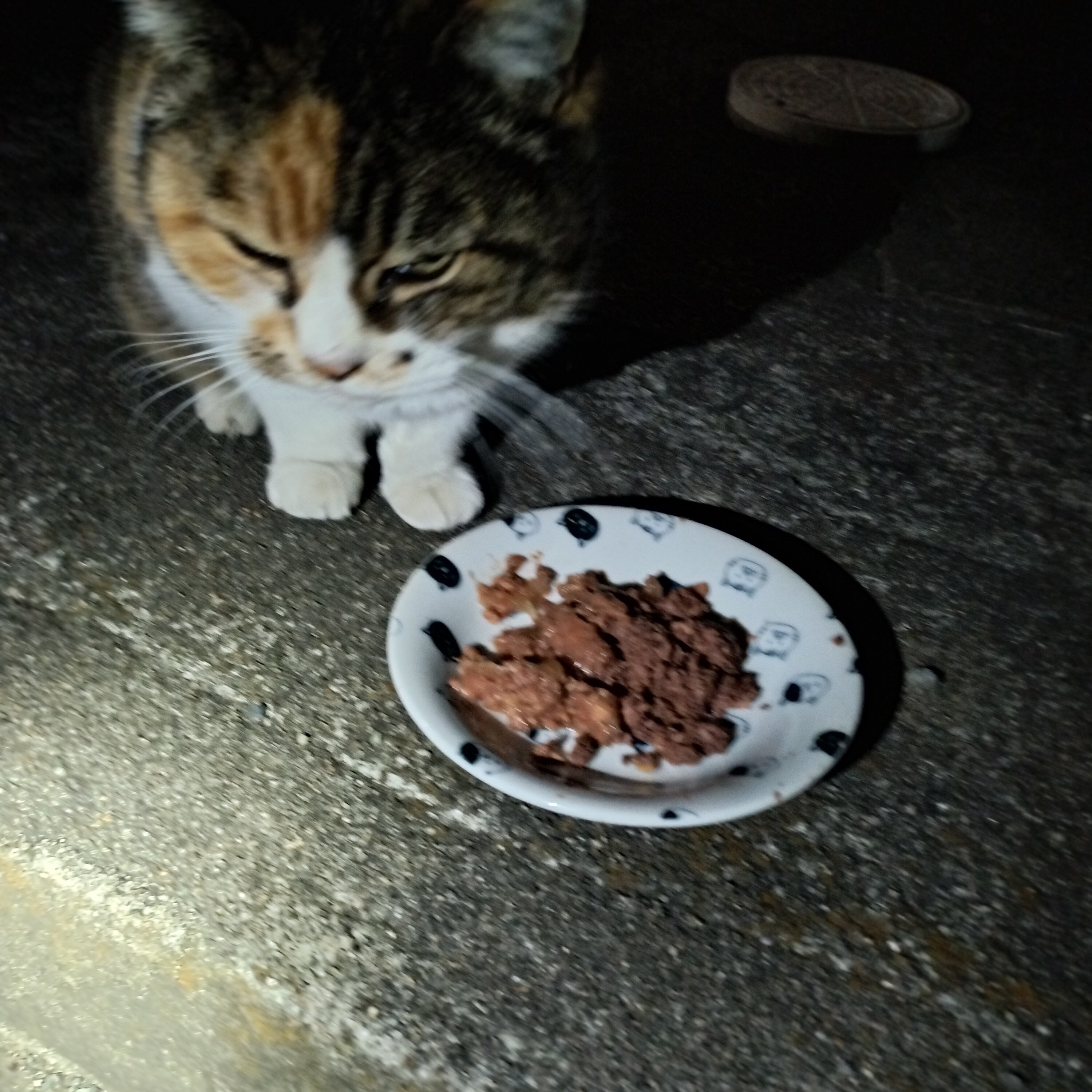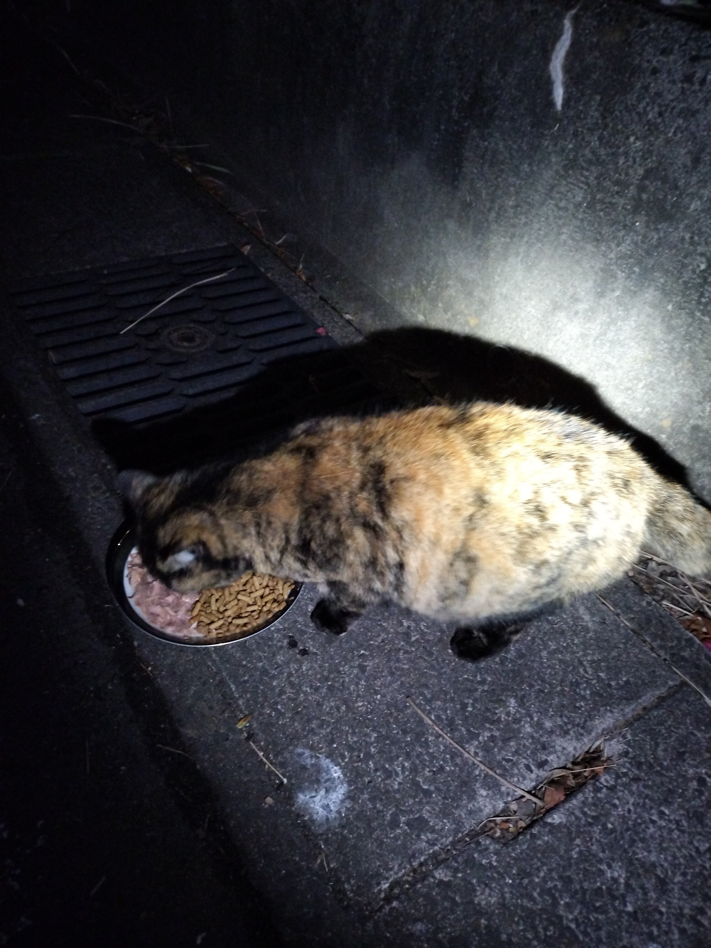 市営住宅のミケママも今日は全然ご飯を食べてくれませんでした。 市営住宅の多頭飼の方が置いてくれているお皿の中のご飯も残ったままでした…17歳になるミケママは具合いこ悪いとは言ってくれませんが、おそらくあっちこっち痛いのと、腎臓、肝臓なども悪くなっていると思います。 触らせてくれないので、薬も飲ませてやれないのです…