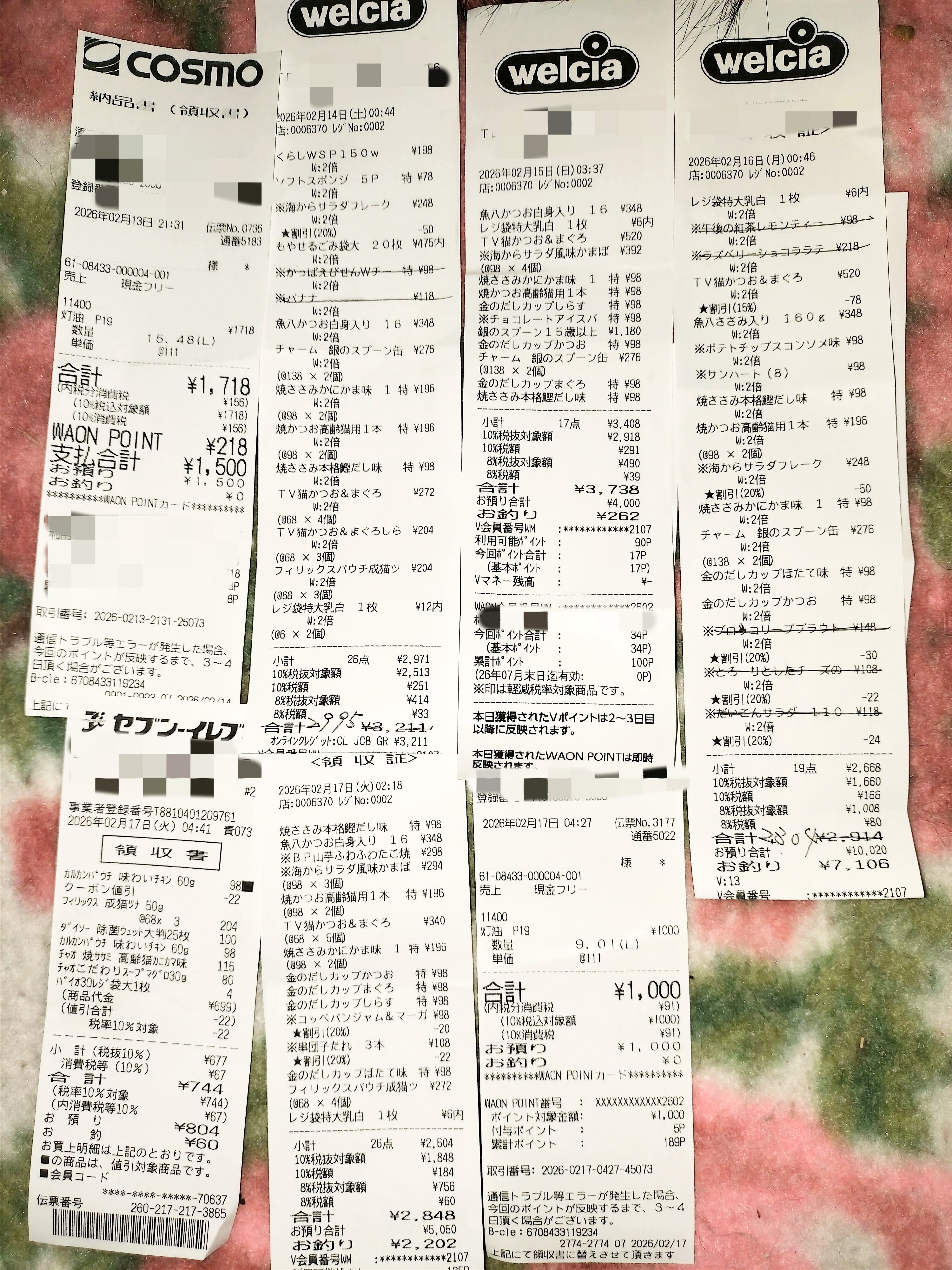 今回の残高 178.421円 (おじいちゃんに渡した2万円の支援金と80代のおばあちゃんに渡した2万円の支援金も含まれています、おじいちゃんとおばあちゃんの時間帯が合わないので、領収書はまだもらえてません)