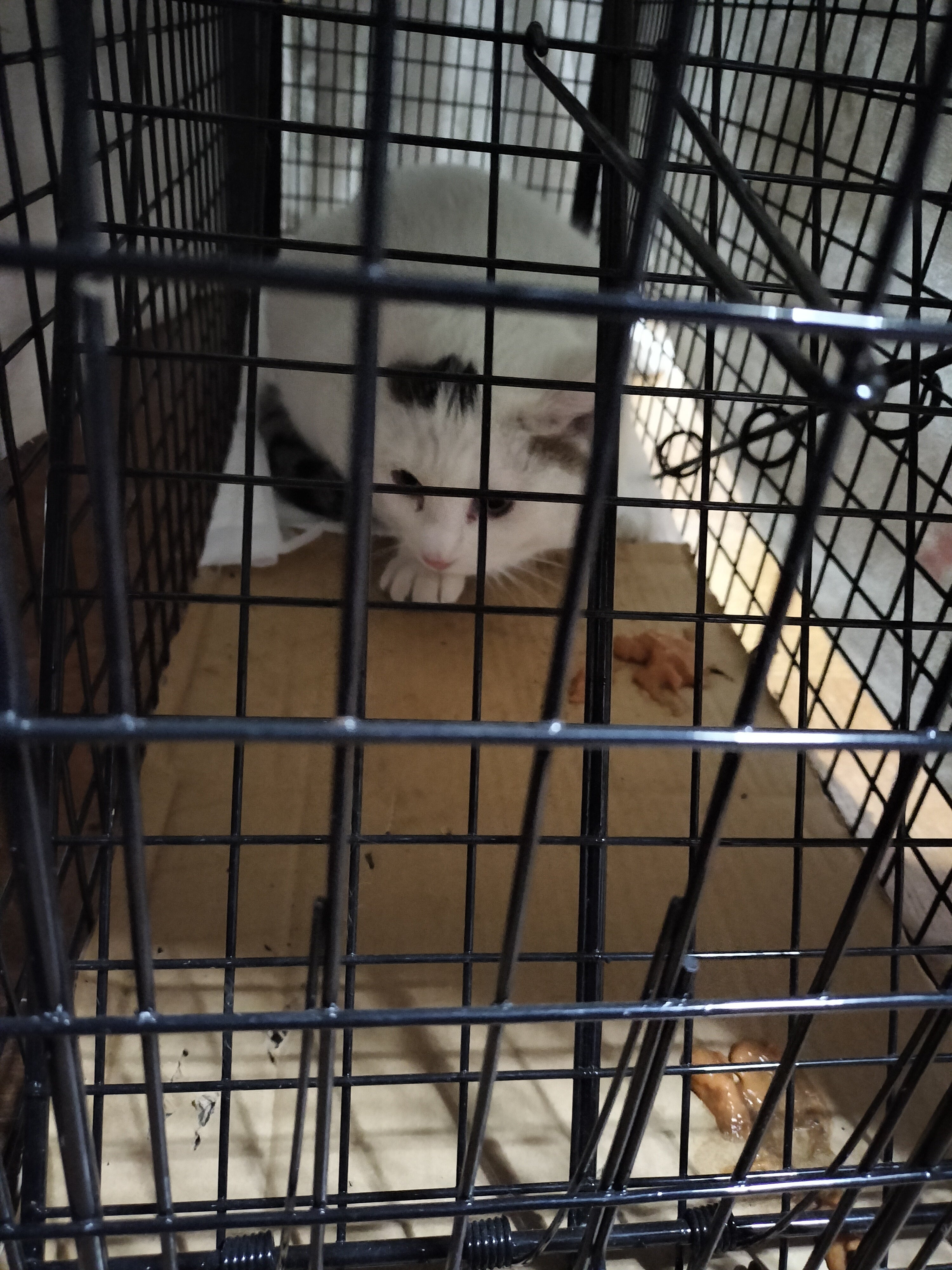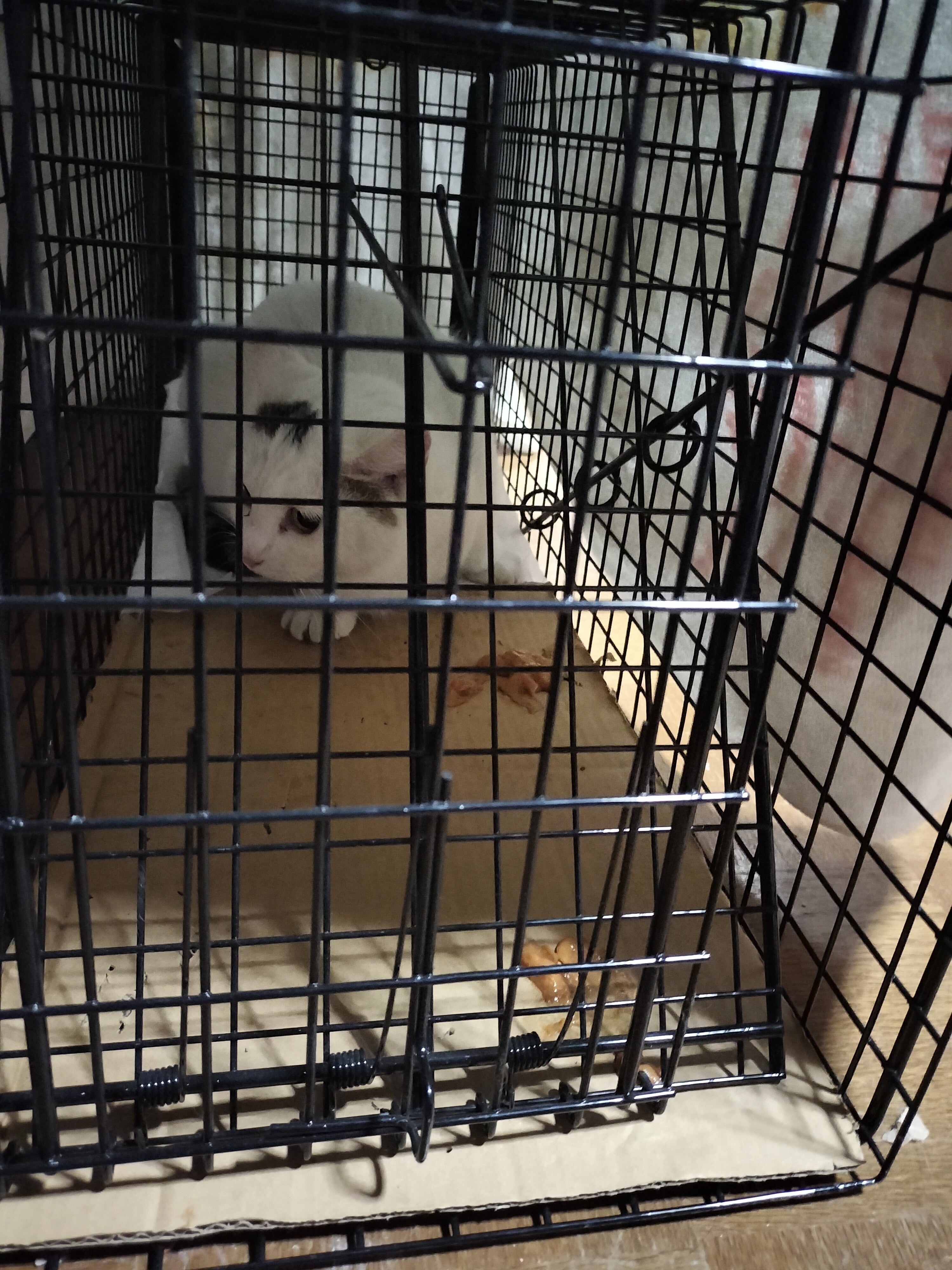 白猫ちゃんも発情し始めたのです、早く避妊をさせないと私も、失敗しないようにとハラハラしましたが、白猫ちゃんは少し懐いていたので、無事に捕獲器に入ってくれました。