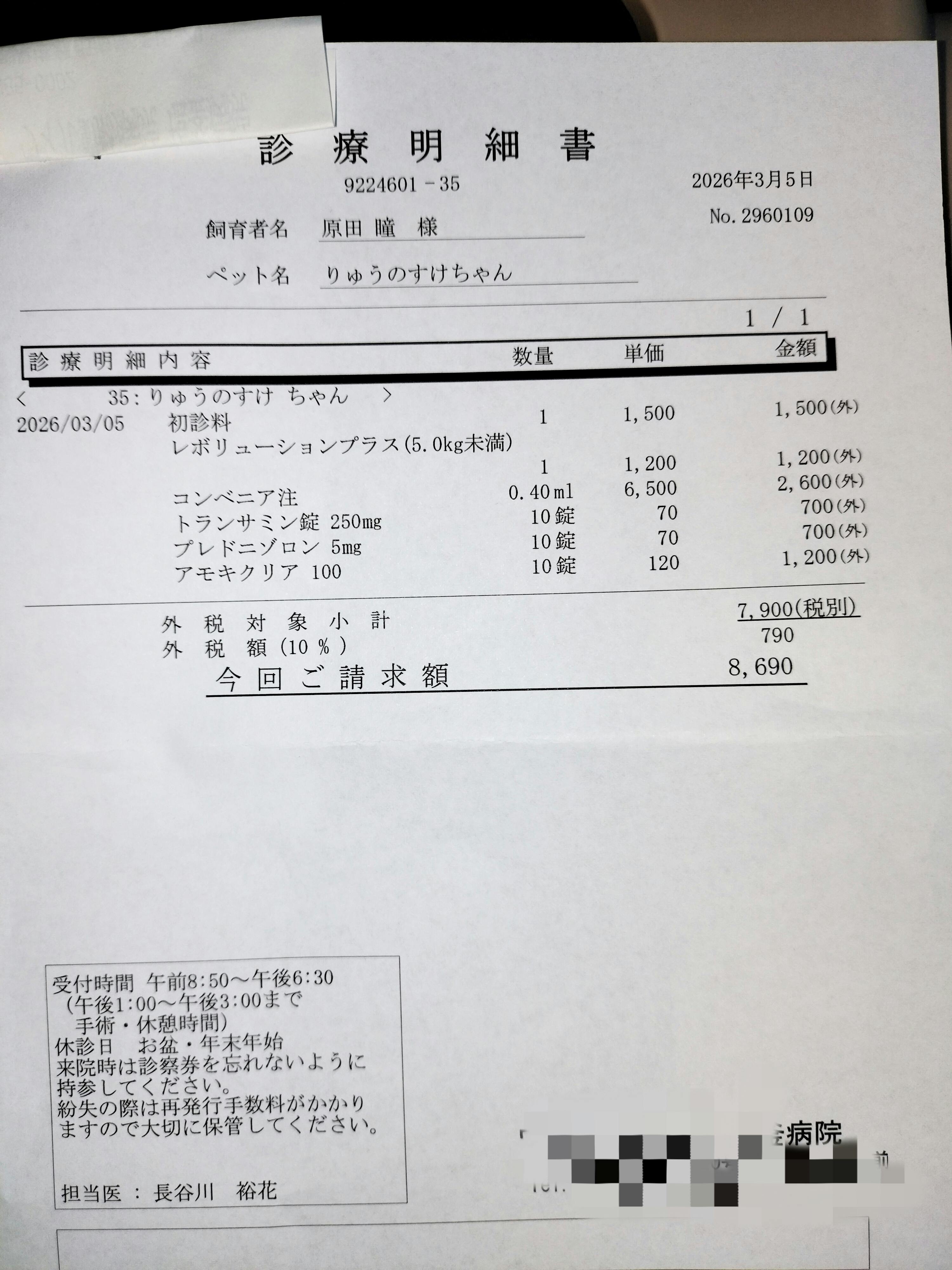 手術代が安くすみましたので、保護猫の13歳の龍之介くんを病院につれていきました。風邪が長引いていました。全身が痒くて掻いてばかりいました。
