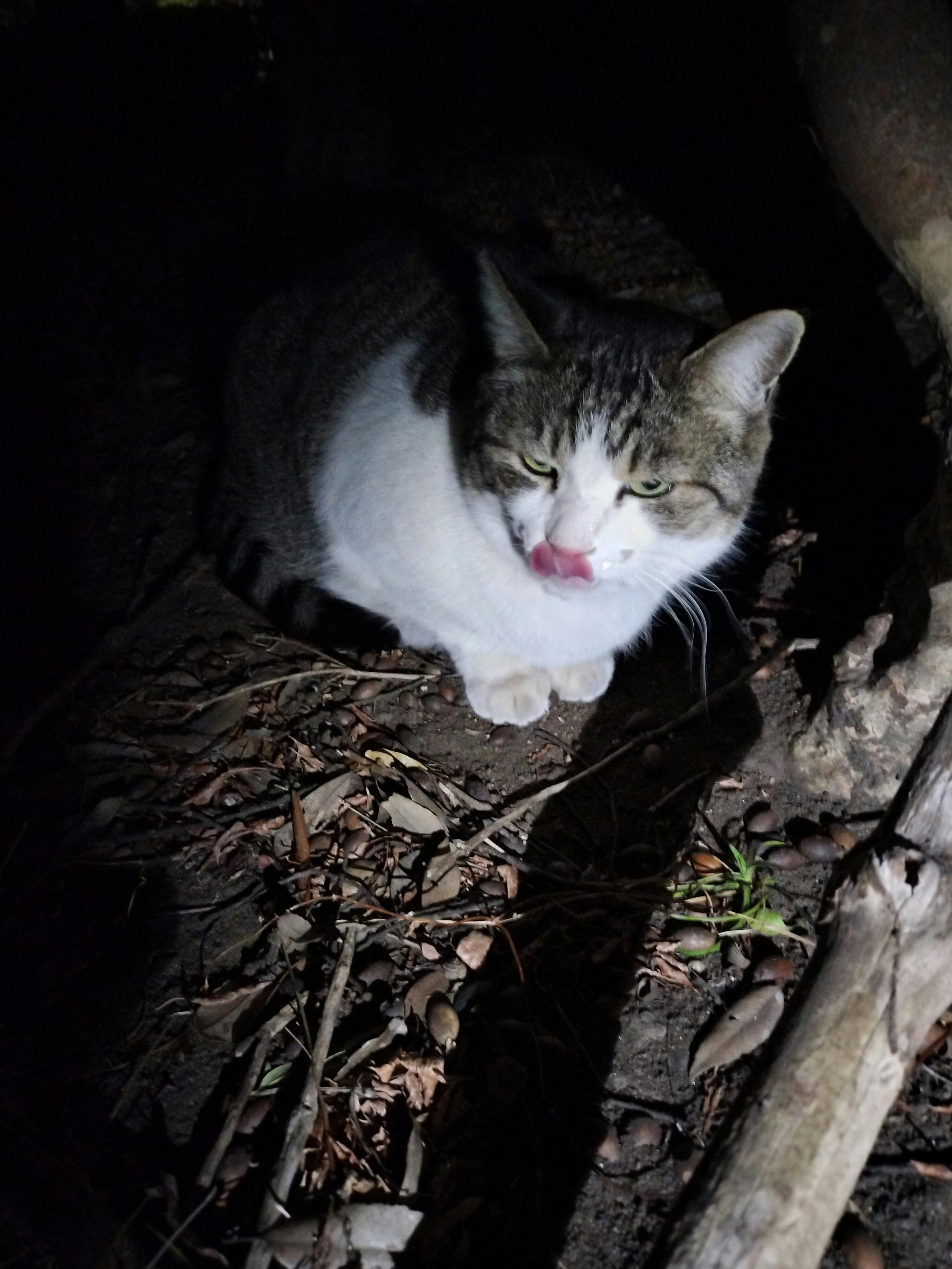 今日もタイガーは出て来てくれました。 代わりにミューちゃんが居ませんでした… 一体何があったんだろう… いくら探しても何処にもいませんでした。 タイガーの顔を良く見たら、口の歯ぐきが赤く腫れていました… 唇も腫れていました。 痛みがありそうでした。 そのためにヨダレが出ていたのかも知れません。