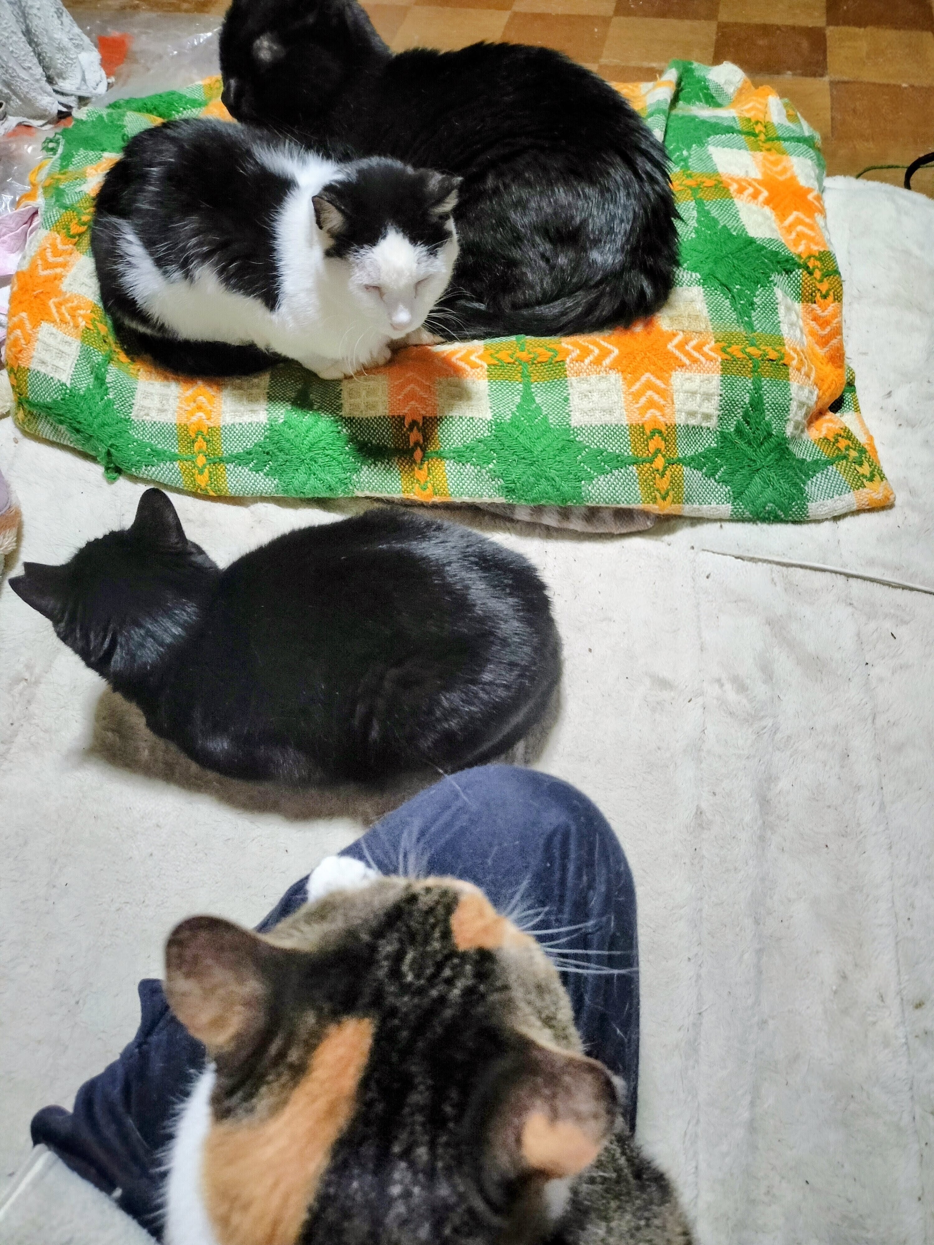 全員高齢猫です、みんなが缶詰とパウチを待っています… 毎日胃が痛くなります。 最近は肩と首も痛くなりました。