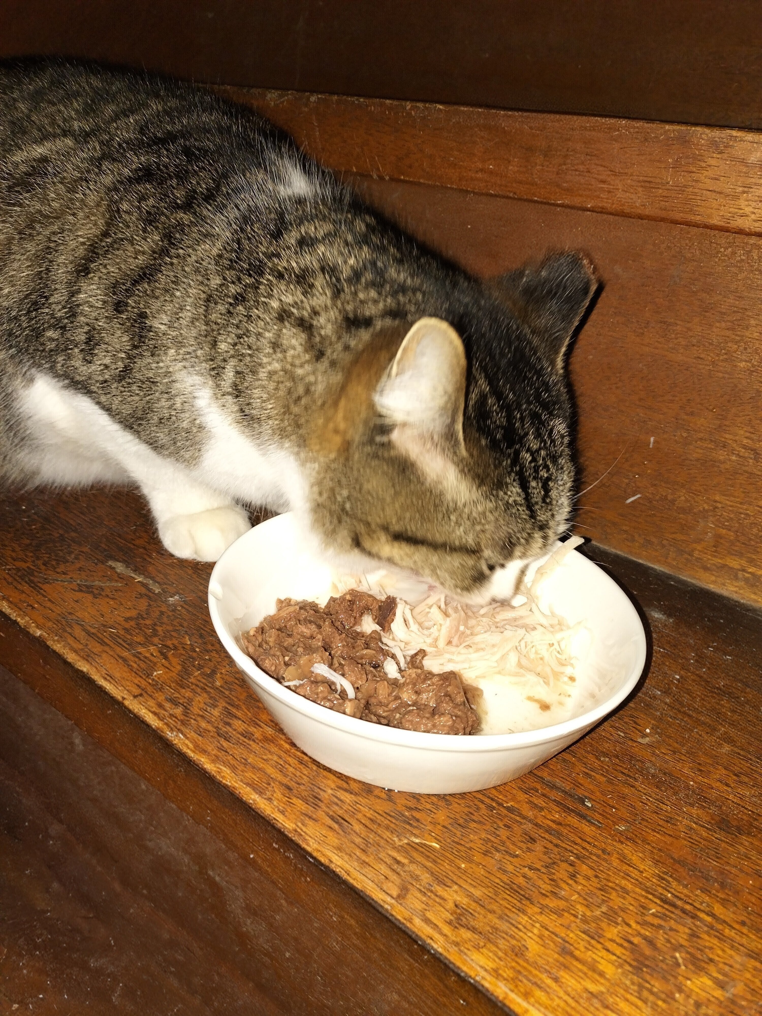 いつも、支援者様方には本当にいつもお世話になっております。 いつもご支援をありがとうございます。 今回は餌のご支援を皆様にお願いしたいのです。 毎日の仕事の稼ぎを一回の買い物で全部使ってしまっている状況なのです… 高齢の小ミケちゃんもまったくカリカリを食べてくれないのです。 なんか、美味しいものないの?と言う顔です…