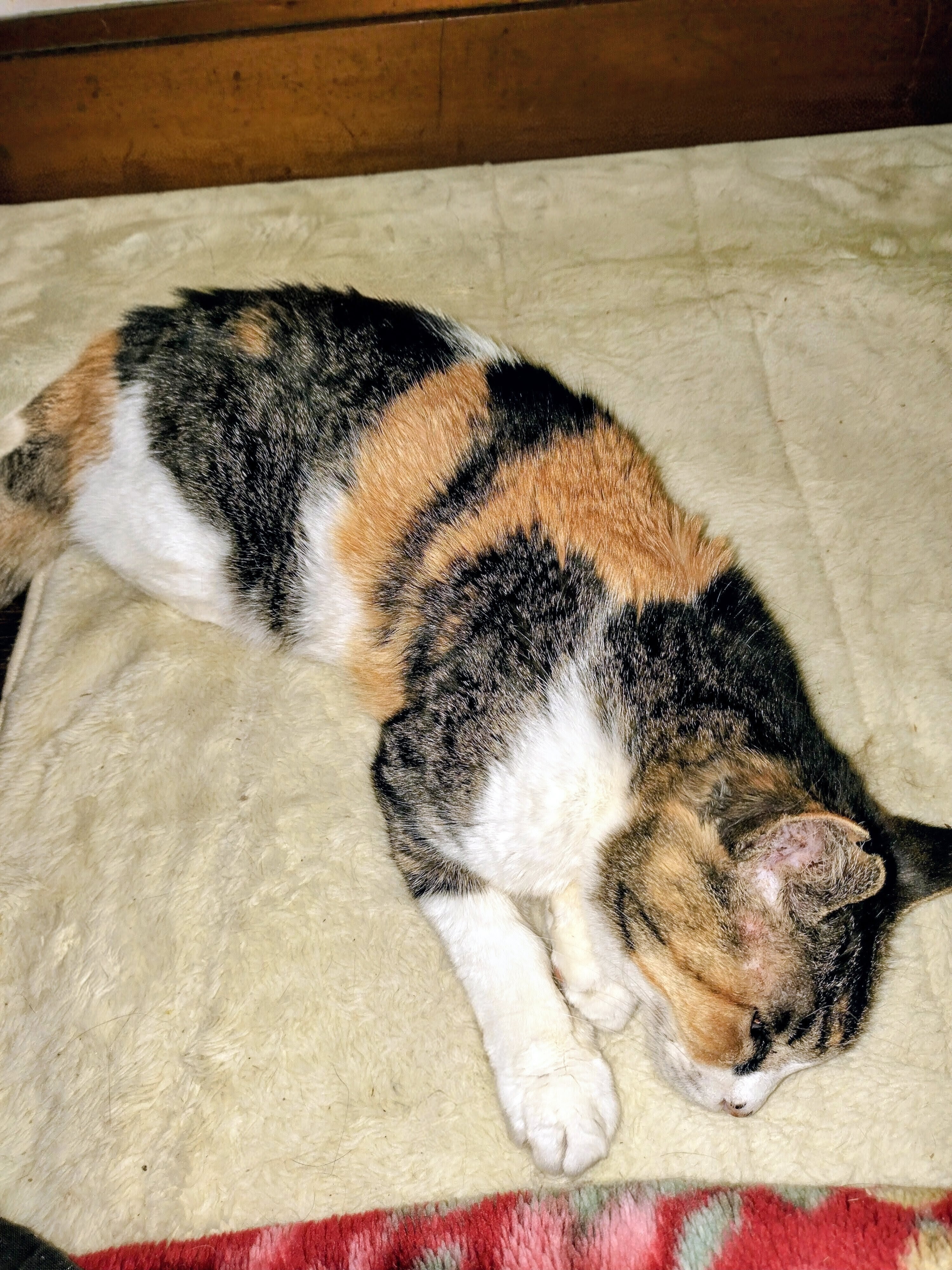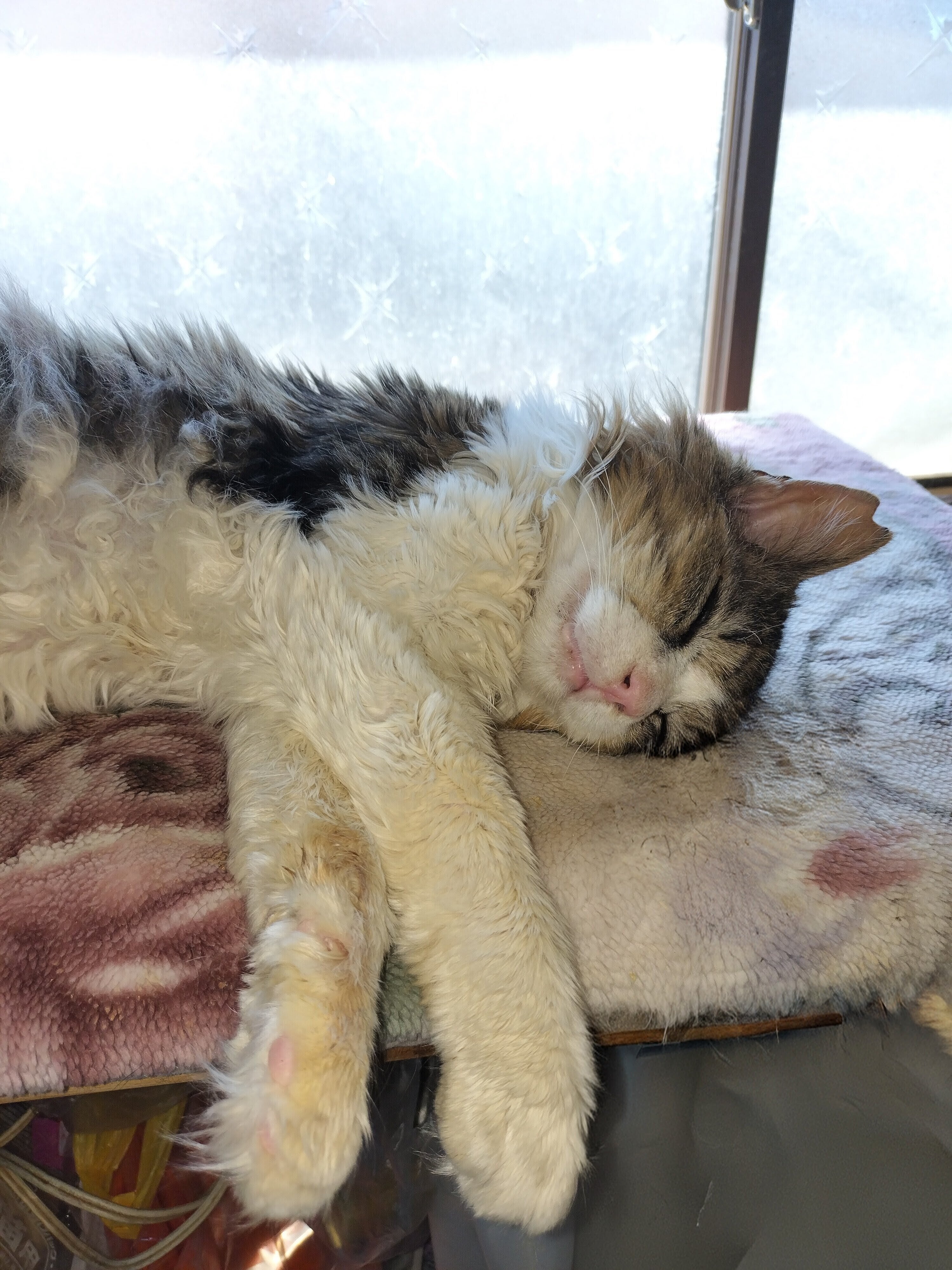 こちらの小五郎さんも歯が無いのです。缶詰をたらふく食べれて夢の中です。 常に猫達の幸せを考えていますが、なぜだか、現実は養うのに厳しい状態です。どうか、皆様方のご協力をお願い致します。 何でも構いません、少しでもご支援を頂けると私も大変助かります。猫達の病院代と自分の支払いも沢山ありますので、どうぞ、よろしくお願い致します。