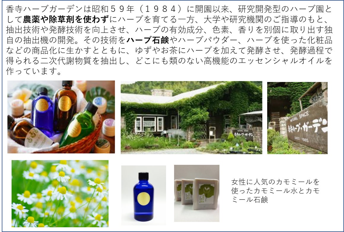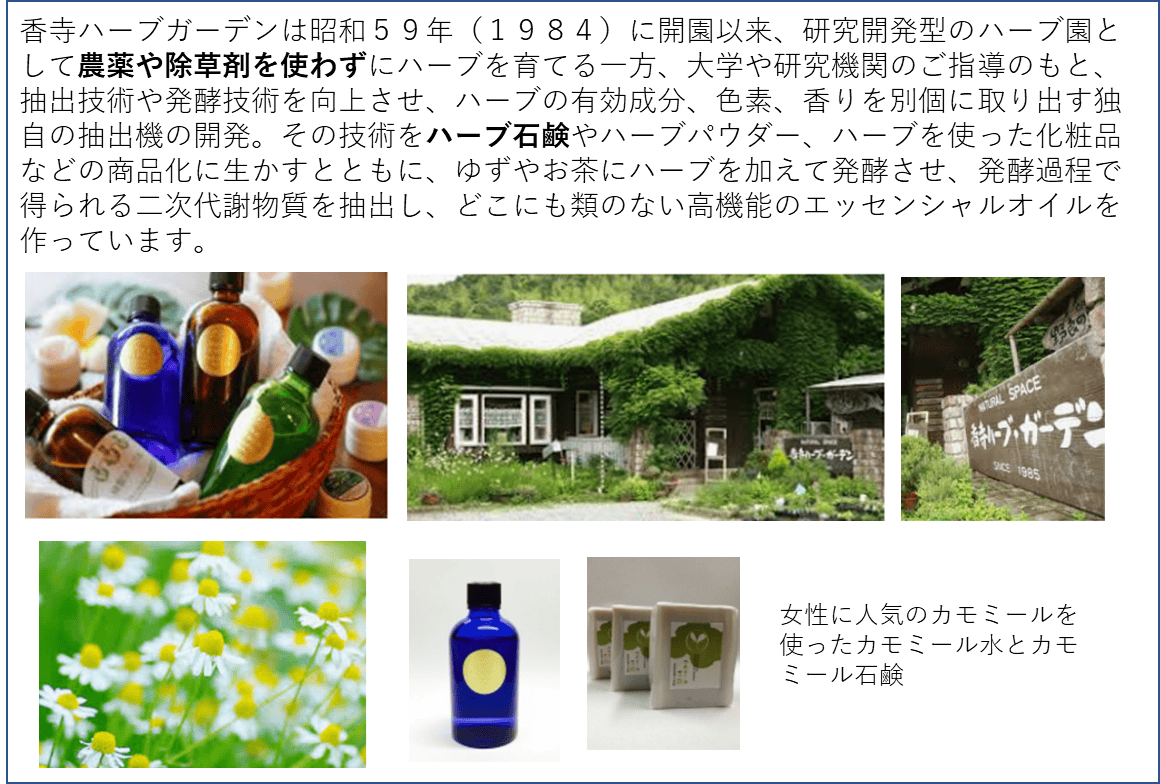カモミールとラベンダーの花を摘み取り、香寺ハーブガーデンでアロマを摂取していただきスキンケア商品やお茶などを作ろうと考えています。