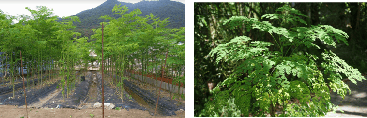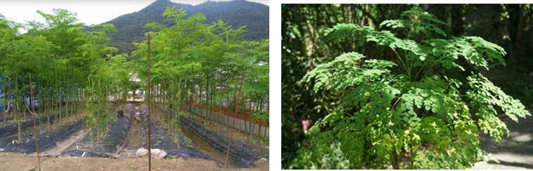 モリンガは「奇跡の木」、「生命の木」などと言われ、これまでに発見された可食植物の中で最も栄養価が高いとされ、その葉にはビタミンCはレモンの約6倍、鉄分はプルーンの約6倍、カルシウムは牛乳の約6倍など基本栄養素をかなり含んでおり、国際連合食糧農業機構(FAO)より子供などの栄養状態改善に利用を推奨されています。