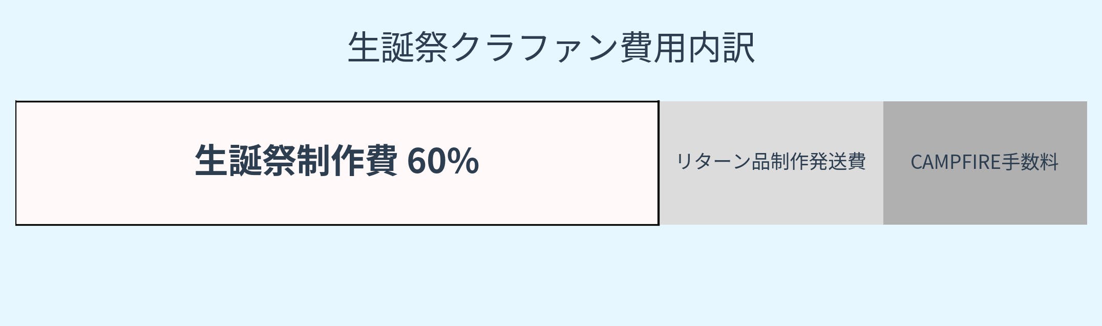 クラウドファンディングで集まった支援金は、支援金額からリターン制作発送費及び手数料を除いた約60%が生誕祭制作費用に充てられます。