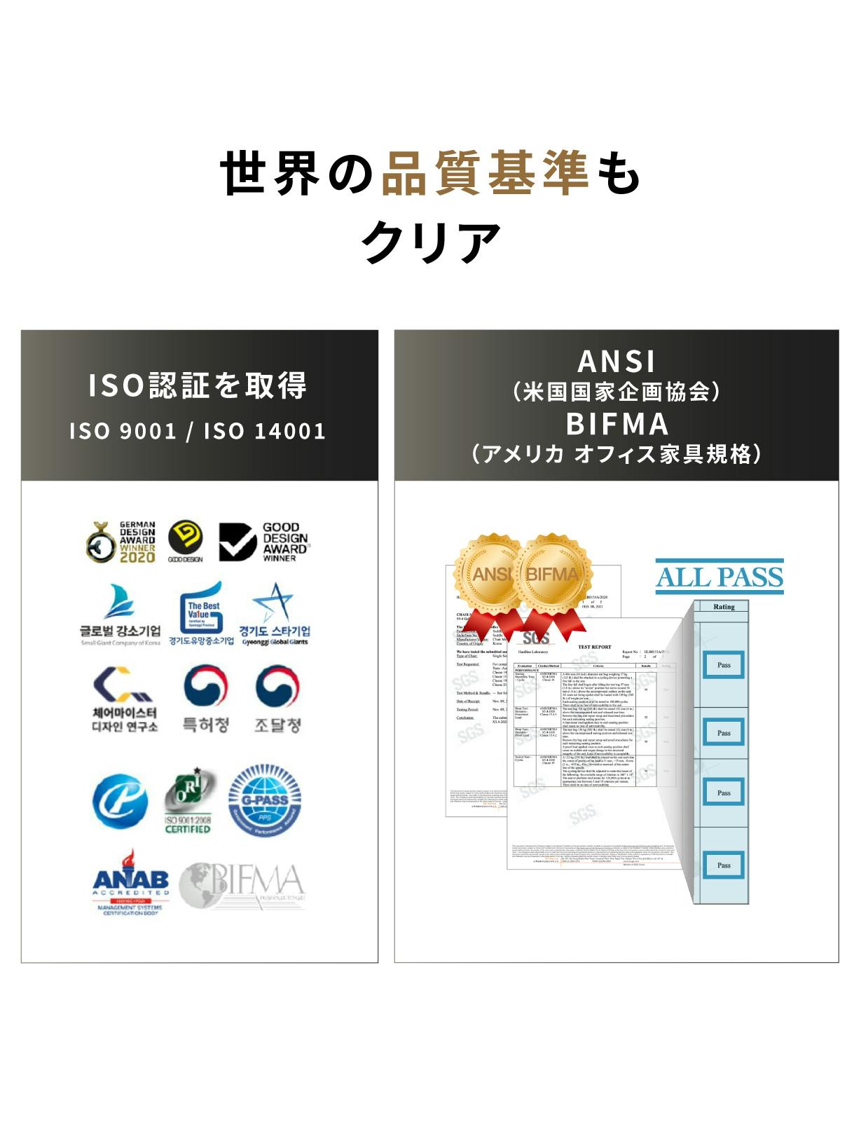 そのほかにもISO認証、韓国のKS認証、アメリカのANSI(米国国家規格協会)、BFIMA(アメリカオフィス家具規格)なども取得。海外の約50箇所に輸出を行っているホースライディングチェアは、様々な世界基準の規格をクリアしています。
