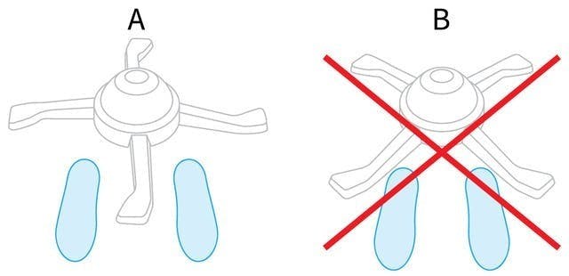 座るときは、足の位置を図Aのように使用することをお勧めします。