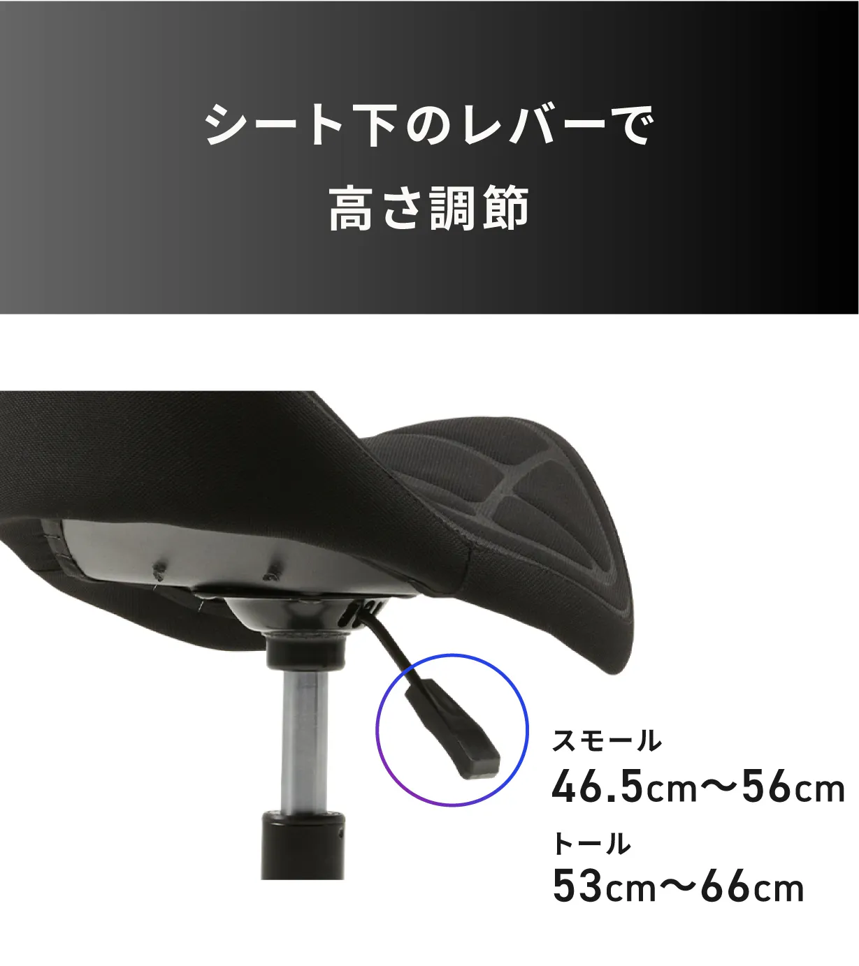 (スモール)46.5cmから56cmまでシートの高さをご調整いただけます。