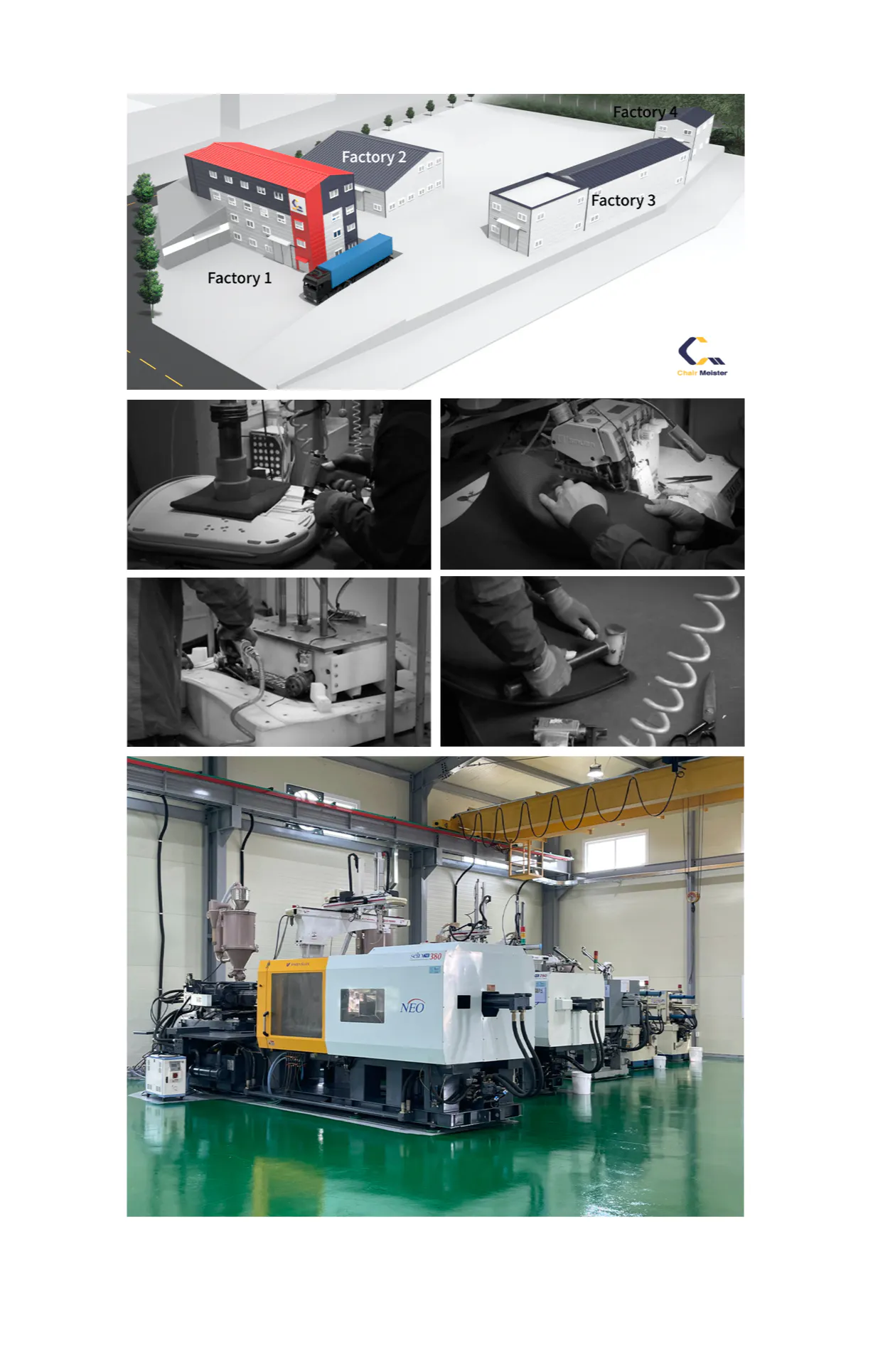 チェアマイスター社は海外約50箇所に輸出を行っている椅子専用のメーカーです。人間工学に基づいたデザインにこだわり、お客様が座って快適な椅子を作るために絶えず研究と努力と続けてきました。韓国の金浦にある本社工場でデザインから生産、検品作業まで全て行っています。